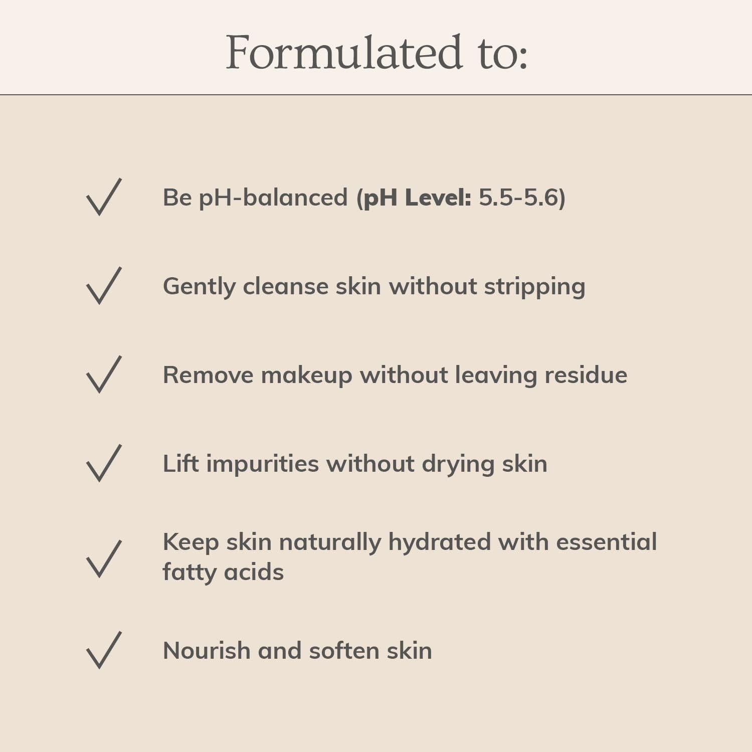- PLANT-BASED FORMULATION: Infused with beautifying herbs and a light blend of natural oils containing essential fatty acids, to keep your skin naturally hydrated. Gently removes makeup and impurities without drying or leaving any residue. Leaves your skin feeling nourished, soft and beautiful.