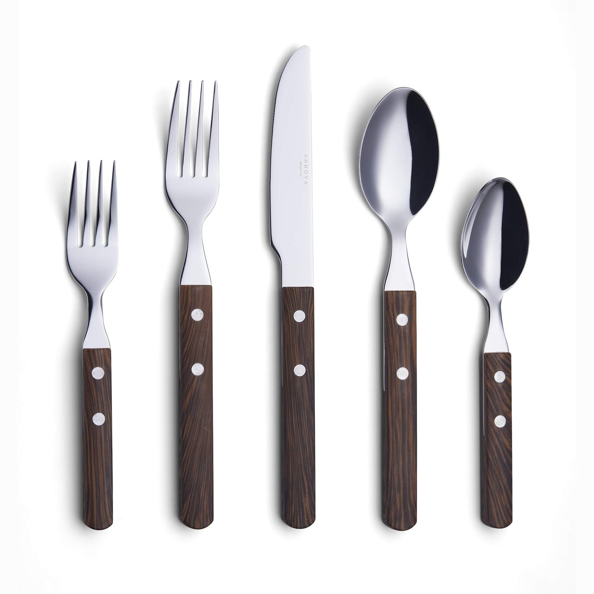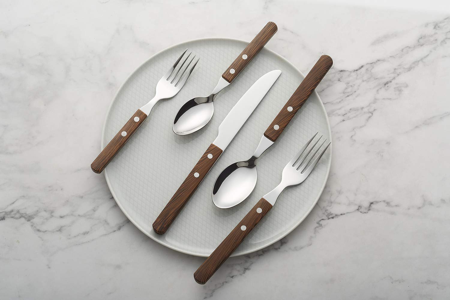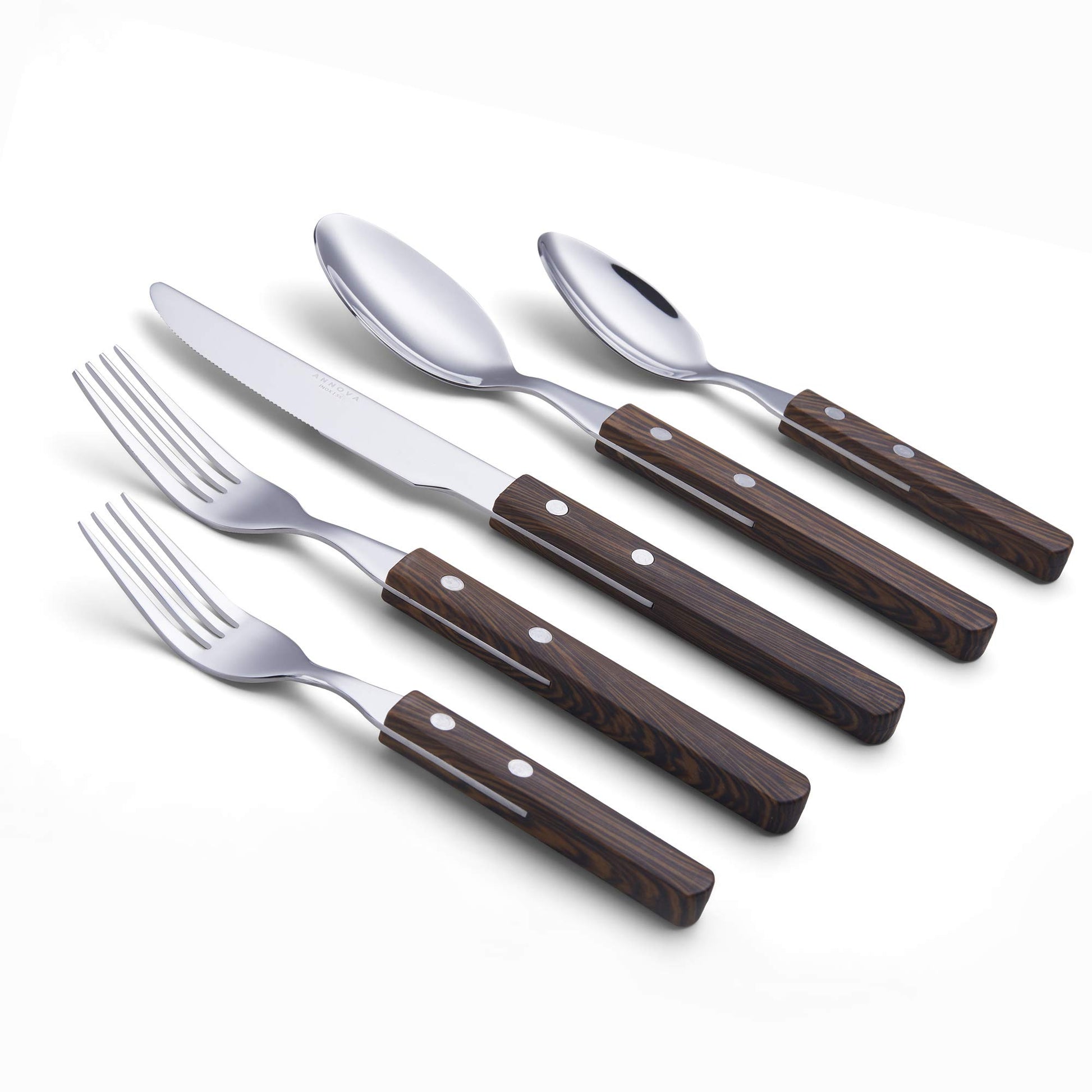 ANNOVA Silverware Set Stainless Steel Cutlery Color Handle With Rivet/Retro Flatware (Walnut/Wood 303, 20 Pieces)