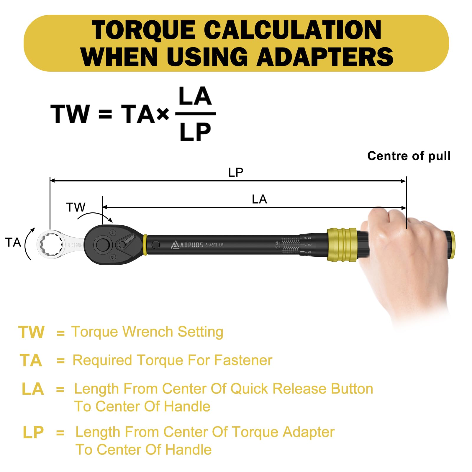 - 【Simple Torque Calculation】The 3/8-inch drive torque adapter extension is designed for using with torque wrench for easy torque calibrations. Each adapter measures 2 inches from the center of the square drive to the center of the adapter opening. Center-to-center length on adapter is easy to accurately calculate the torque adjustment due to the added length and leverage.