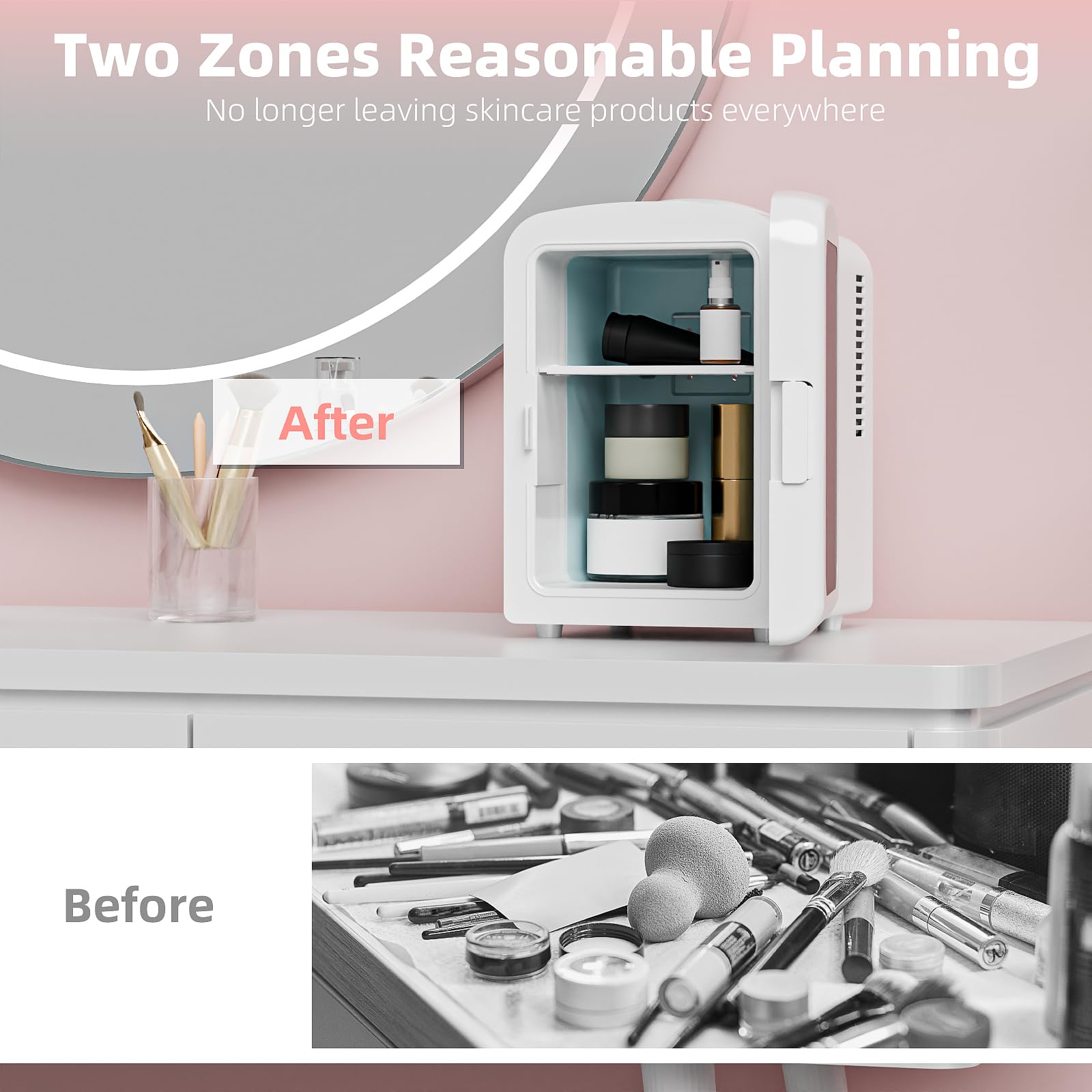 - EFFICIENT COOLING: This mini fridge can cool up to 32°F (18°C) below ambient temperature. You can also increase its temperature for your different needs, such as makeup and skincare items storage.