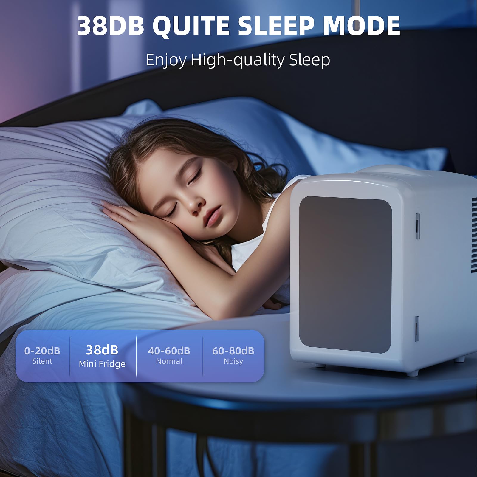 - 4L CAPACITY: Store 6 can/12 oz with no worry; dimensions are 9.65"D x 7.09"W x 10.24"H; The removable shelf makes the fridge become more flexible to store small items like breast milk, skincare, cosmetic, or food.