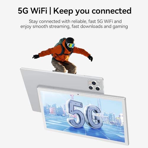 - 【Keep Connected with 5G WiFi】This wifi tablet has dual-band 2.4G + 5G WiFi and Bluetooth 5.0, you can stay connected with reliable, fast 5G Wi-Fi and enjoy smooth streaming, fast downloads and gaming with no lag. Tablet with keyboard also provides high efficiency and low energy consumption in downloading and data transferring to save your tablet power.