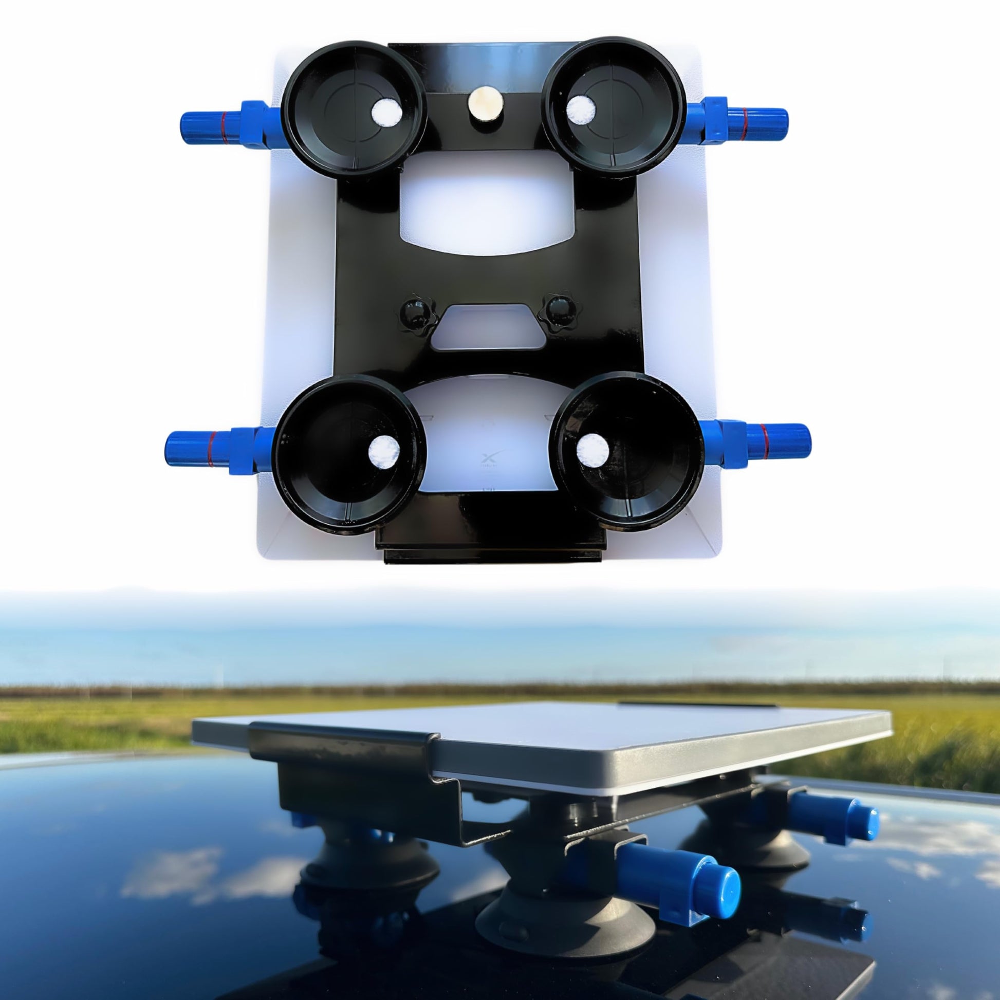- Suction Cup Mounting: Features strong suction cups for secure attachment to smooth surfaces like car roofs, RVs, vans, and boats, providing a stable base for your Starlink Mini Dish.