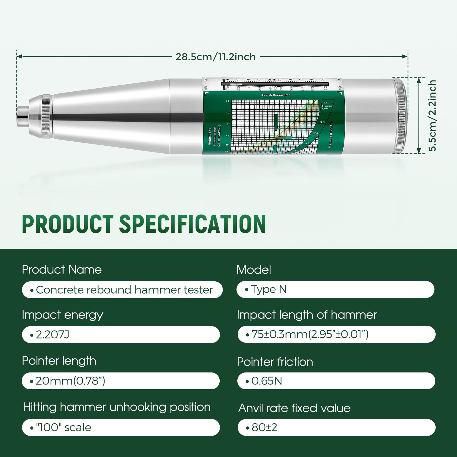 - [Complete Accessories] - The package includes a schmidt test hammer, grindstone, portable case, bounce spring, buffer spring, slotted and cross screwdriver.