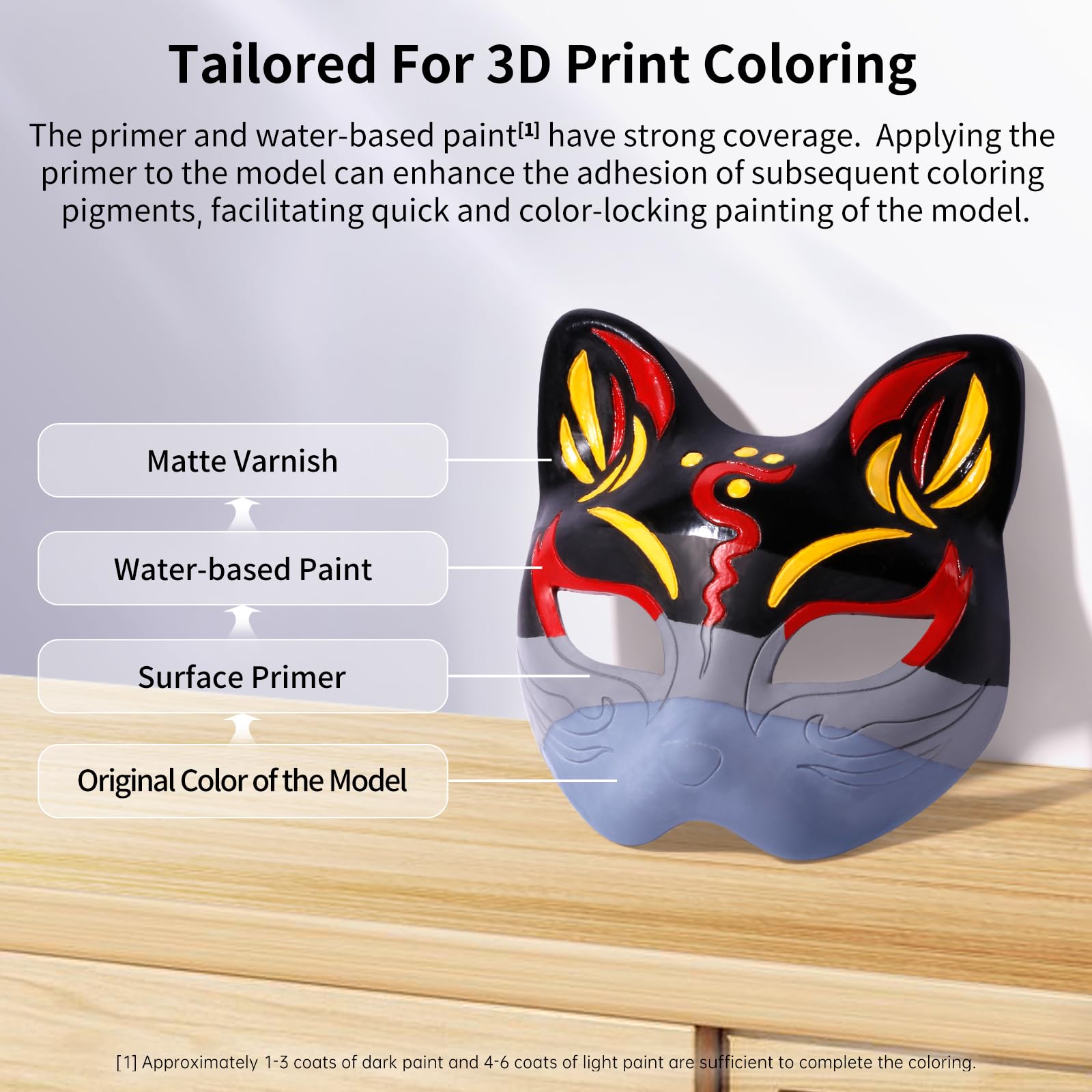 - 【Tailored For 3D Print Coloring】The primer and water-based paint have strong coverage. After applying the primer to the model, it enhances the adhesion of subsequent coloring pigments, facilitating quick and color-locking painting of the model.