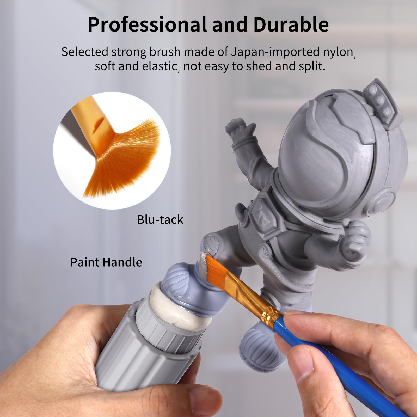- 【Professional and Durable】The brush is made of nylon imported from Japan, it is soft and flexible, not easy to leave traces and durable; the paint humidor can be moisturized for up to 7 days, which is flexible and easy to use, and effectively saves the paint; The coloring handle is made of blue butyl adhesive, which can effectively solve the problem of difficult to hold the coloring hand of small models and easy to stick to the hand of paint, and improve the efficiency of the user's painting