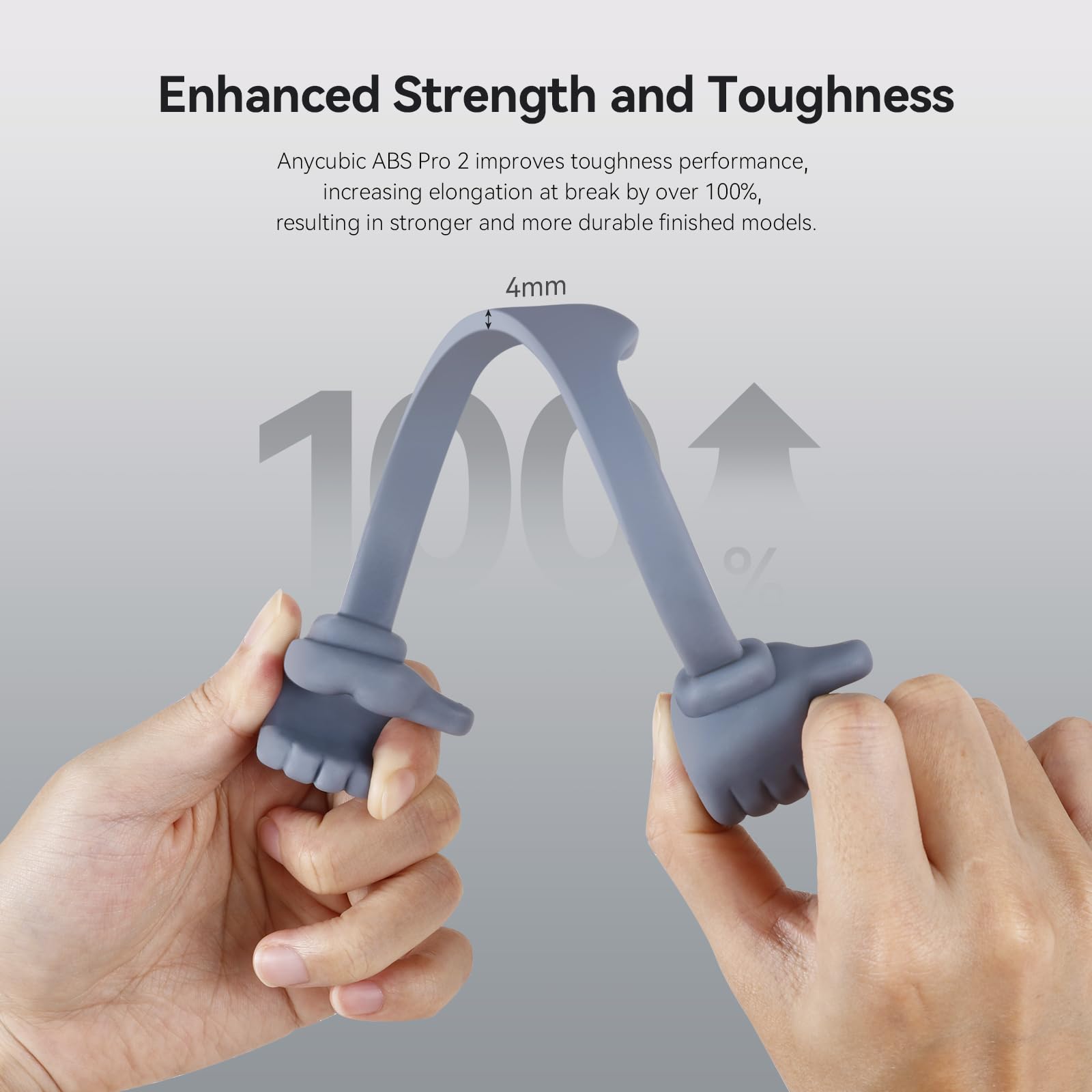 - 【Enhanced Strength and Toughness Beyond ABS Resin】 Based on the excellent tensile and bending strength of the previous version of ABS-like resin +, Anycubic ABS-Like Resin Pro 2 strengthens the toughness performance, increases the elongation at break by more than 100%, and the finished model is stronger and more durable, which can be used to print high-strength and high-toughness models such as structural parts, industrial prototype parts, and fixtures.