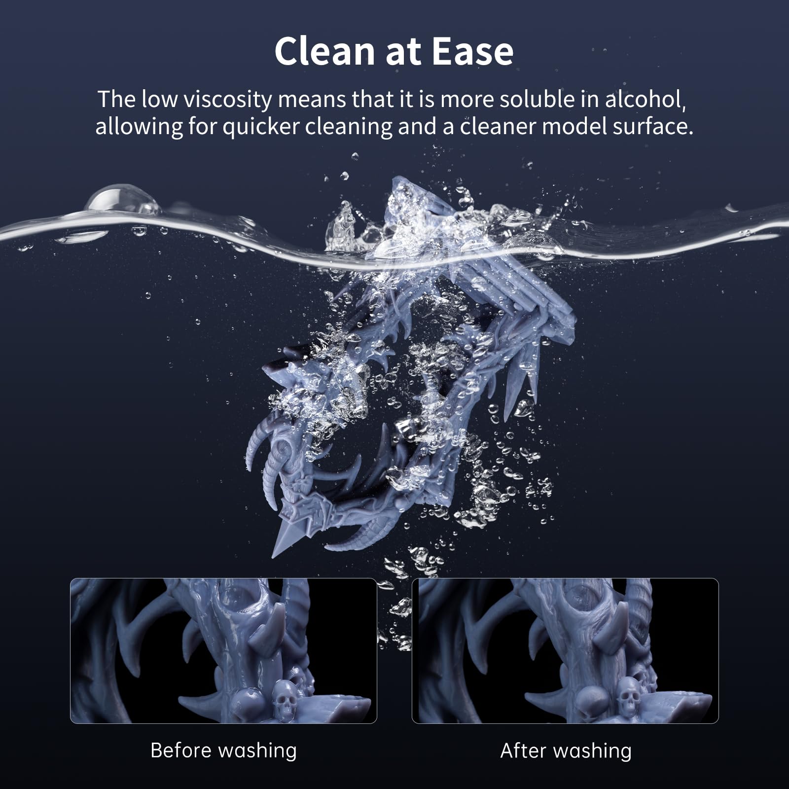 - 【Low-Viscosity, Low-Time-Consumption】The Anycubic High Speed Resin 2.0 has reduced viscosity by 50% compared to regular resin. During the printing platform's up and down movements, its low viscosity characteristic allows for rapid flow to carry away heat, preventing localized overheating, and facilitating quick reflow.