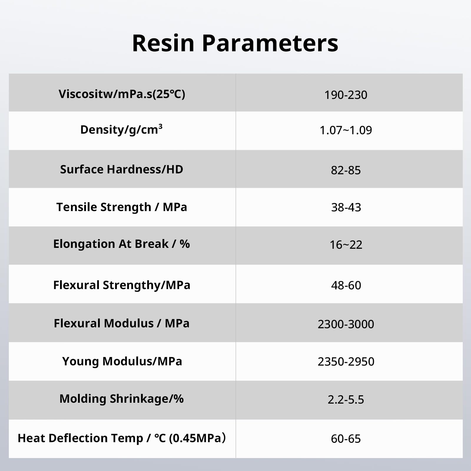 - 【High-Resilience & Less Prone to Cracking】 An impressive elongation rate of 16.62% ensures cured models are highly flexible, long lasting and resistant to cracking.