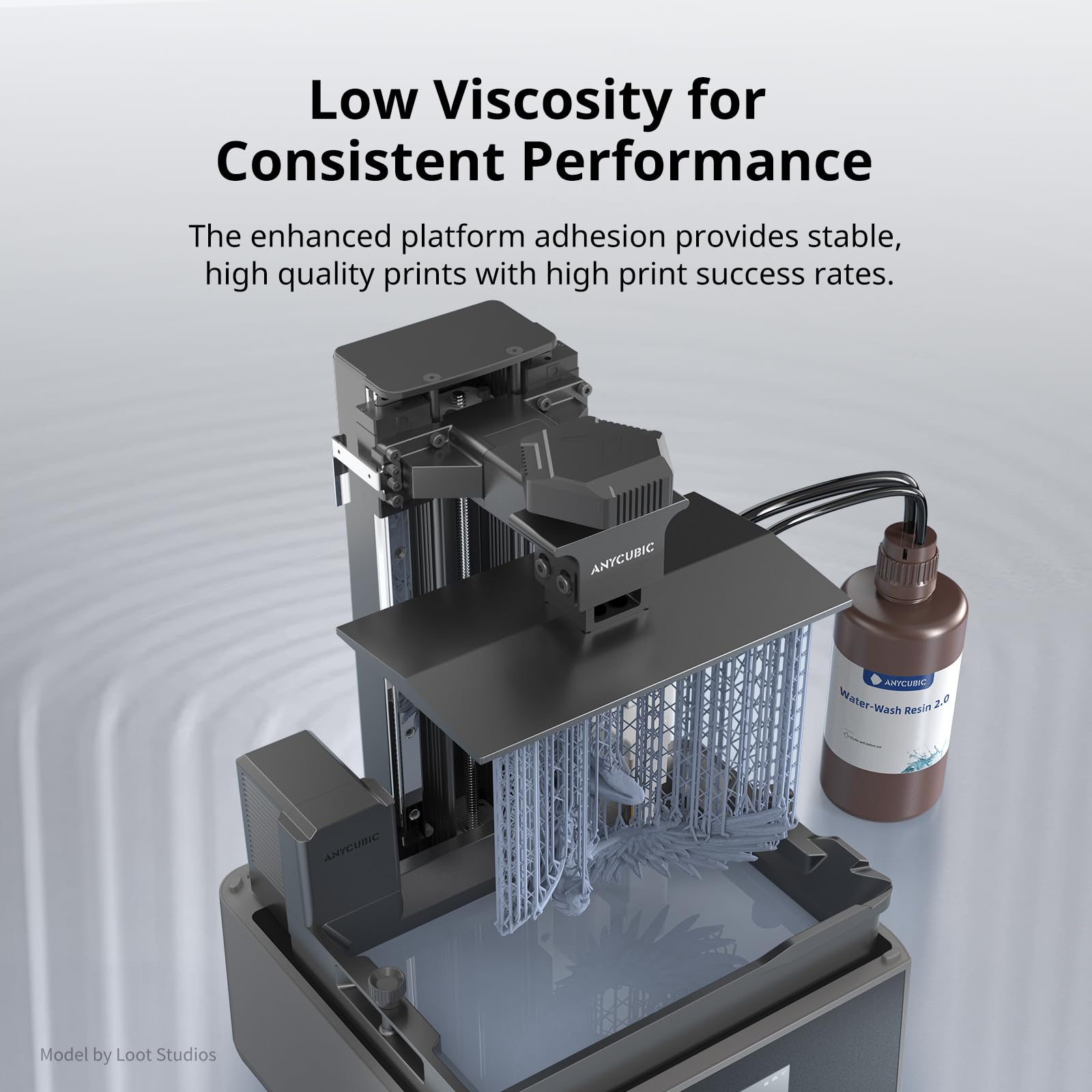 - 【High Compatibility】 Anycubic Water Washable Resin 2.0 is compatible with a wide range of LCD and DLP 3D printers operating within the 365-405nm wavelength, our resin offers seamless integration with most printers on the market.