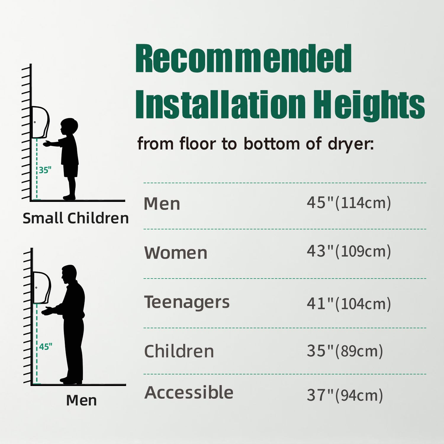 - Small Size, Big Power – Compact size with a focused nozzle delivering 134mph airflow for fast, efficient hand drying