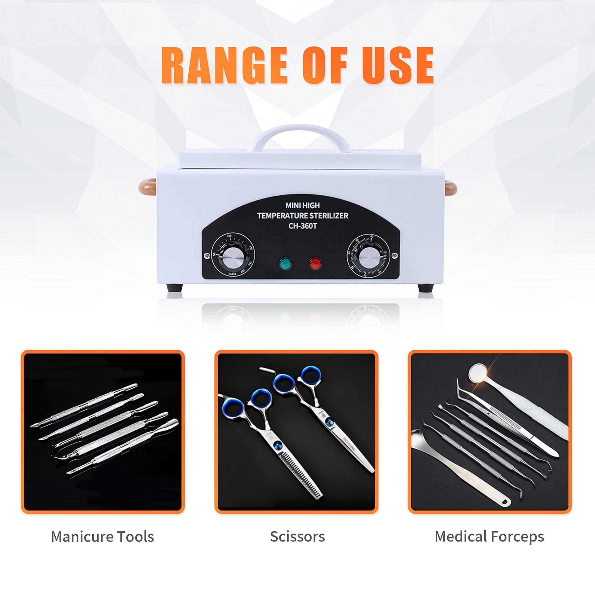 - [Wide range of use] The dry heat cabinet can cleaningnails, tweezers, nail clippers and other metal supplies. Different items can be adjusted to different temperatures to achieve a good effect.