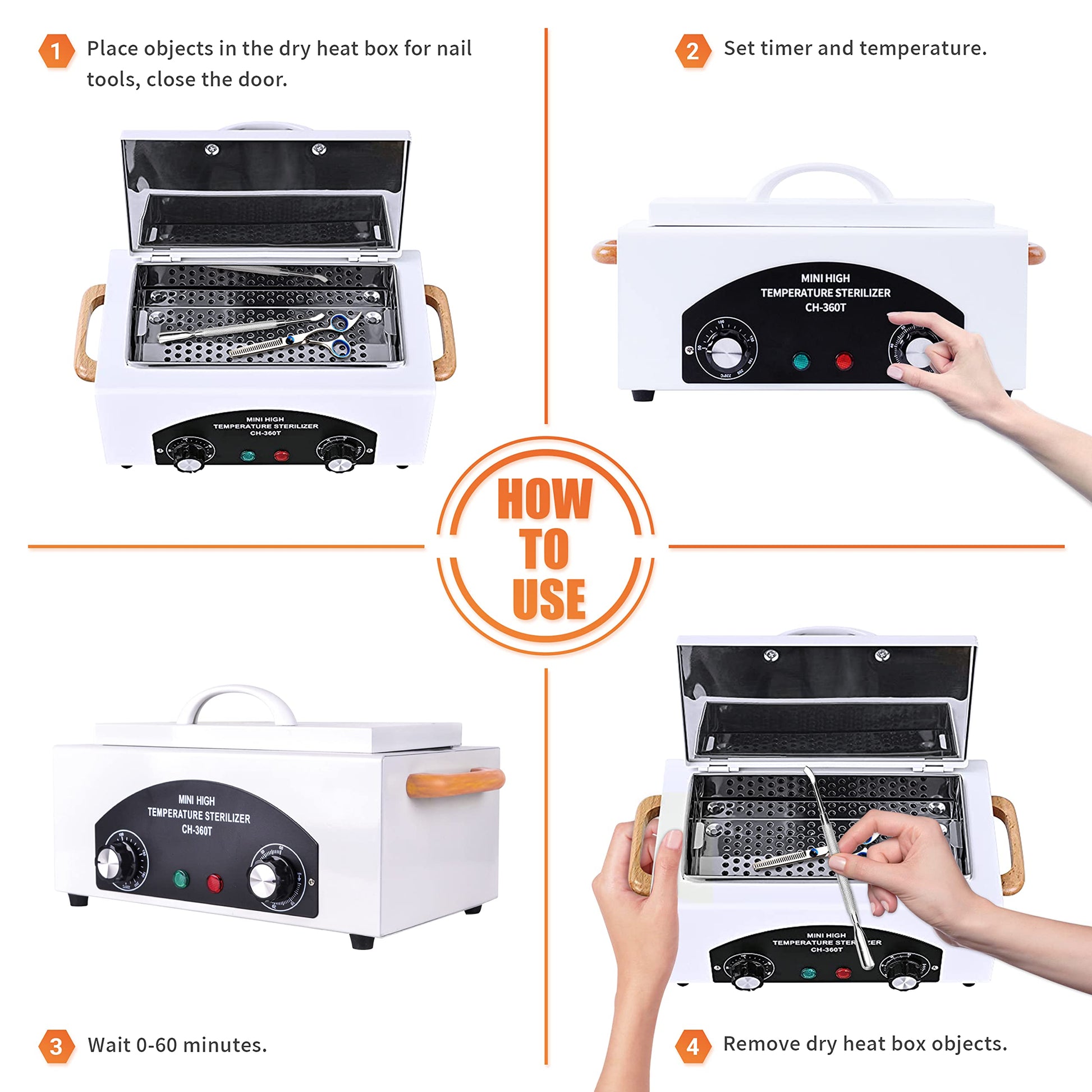 - 【Applicable scenarios】:It is a perfect assistant for beauty salon, Nail Salons,Pedicures,barber shop, dental clinic or home use.The dry heat box Can Also Be Used for Nail Metal Tools and Dental Tweezers for cleaning Metal Ceramics Tools。