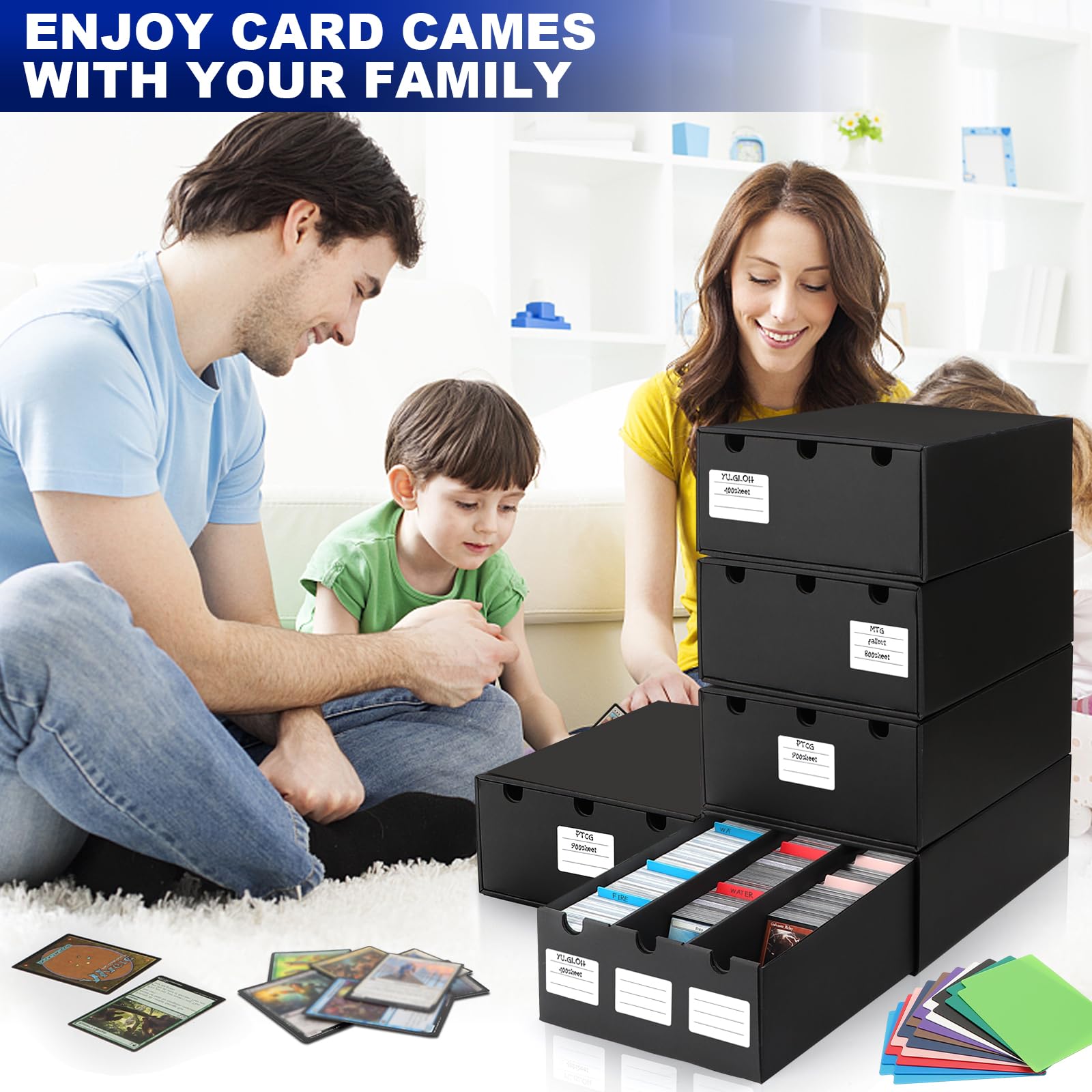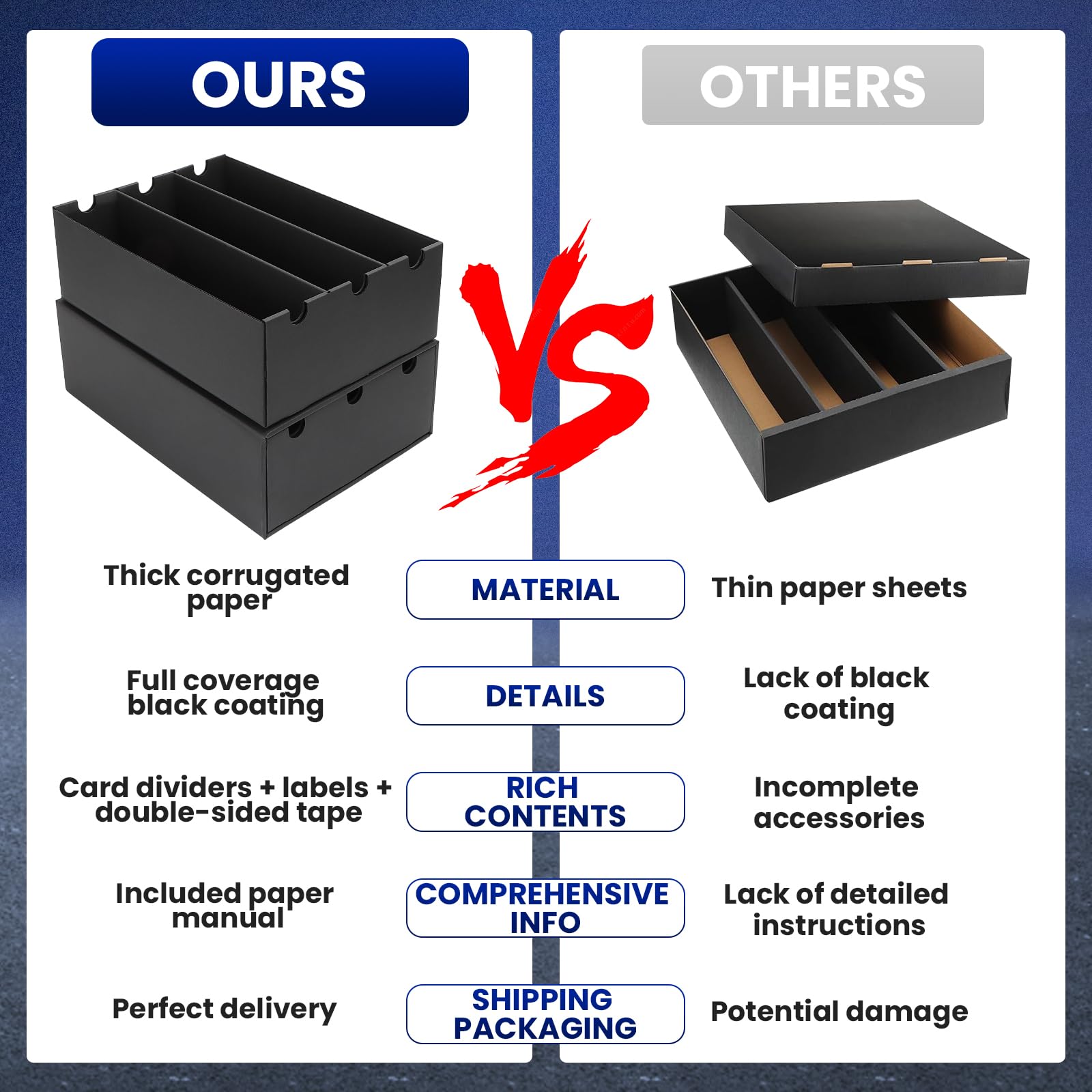 - 【Thickened & Stable Material】Our trading card storage box is made of thickened corrugated cardboard, which is sturdy and durable, not easy to deform or break, and can safely store and collect your large amount of cards. Keep your collection cards organized and protected from dust and damage.The tcg card storage box features an all-black coating with no dead angles, giving it a stylish and attractive appearance without looking cheap. Keep your collectible cards well-organized and protected from dust and damage.The trading card organizer can be easily stacked for convenient storage and space saving.