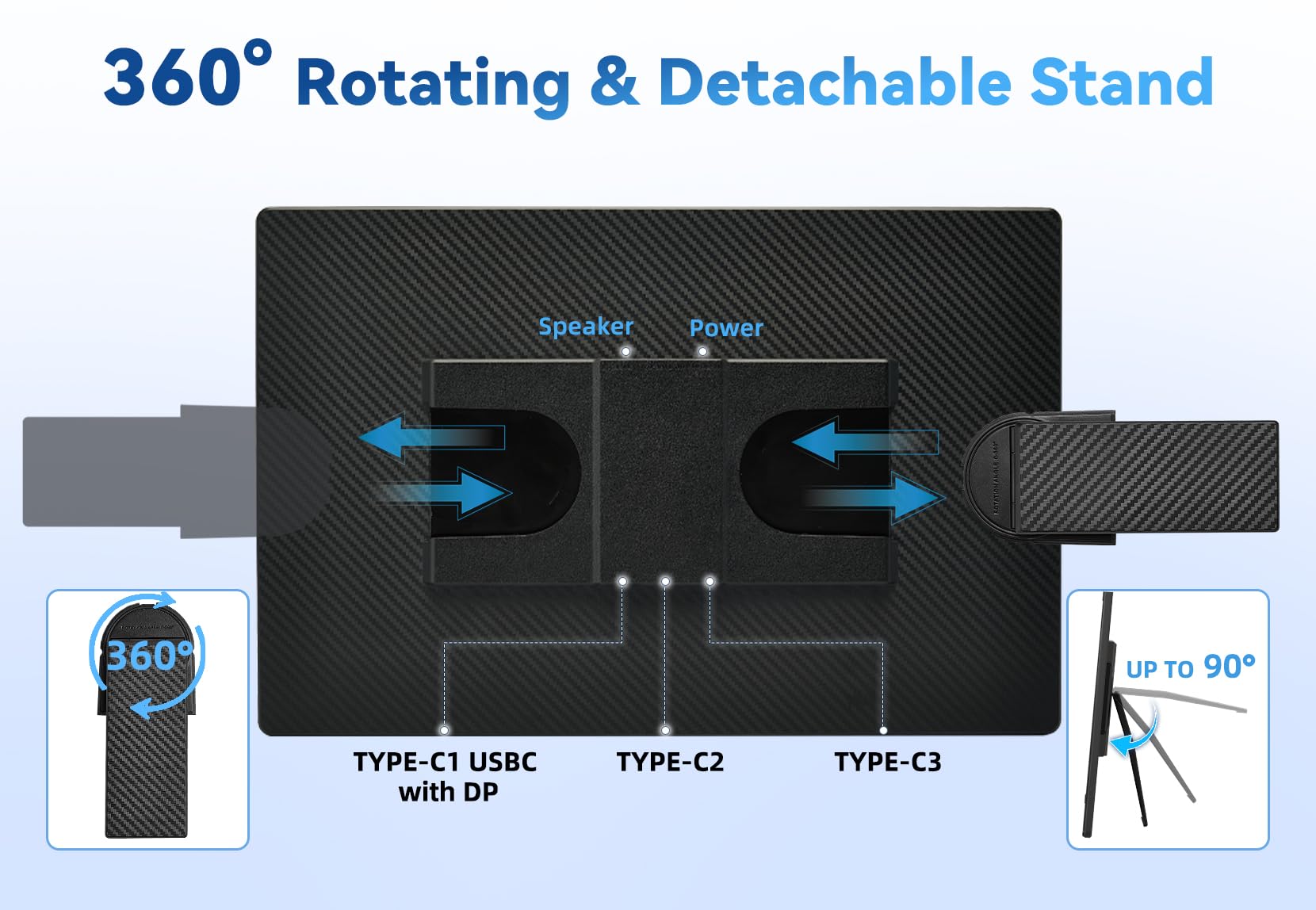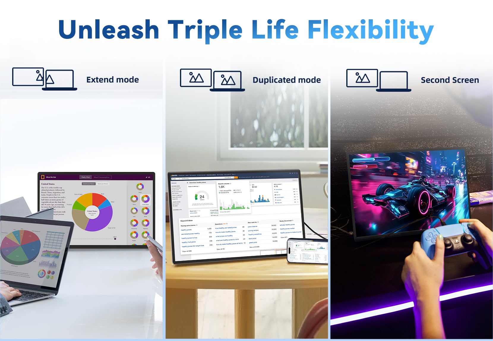 - 【Flexibility Meets Functionality】 This portable computer screen features a stand that can be tilted up to 90° and rotated a full 360°, giving you the flexibility to position it exactly how you want. With slots on both sides, you can easily switch between horizontal and vertical orientations, making it perfect for everything from spreadsheets to social media. And with three screen modes—Duplicate, Extend, and Second Screen—you can tailor your setup to fit your needs. This monitor is your loyal partner. We offer a 365 day warranty to protect your use. If you need any help, please contact us by “Ask a question” button to leave a message.