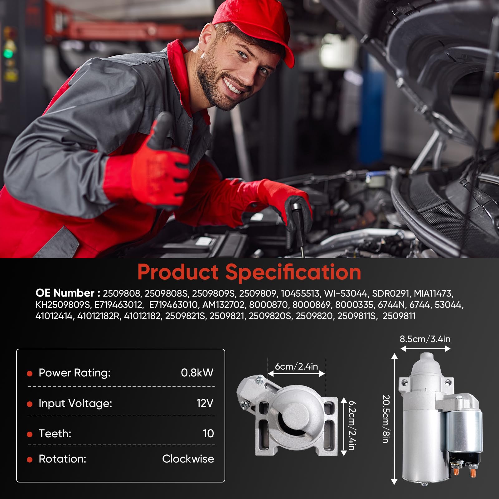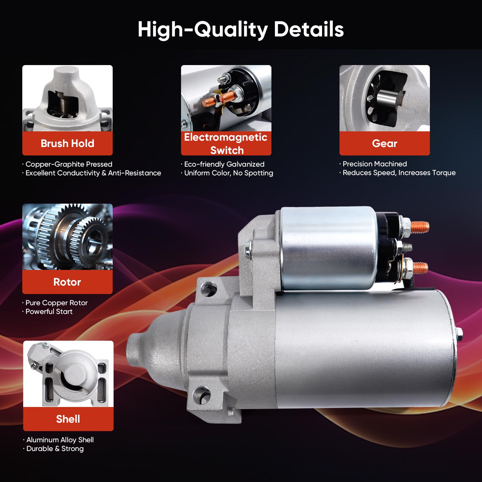 - [High-Quality Details for Enhanced Performance]: Featuring a precision-machined gear, a pure copper rotor, and a copper-graphite pressed brush hold for excellent conductivity, 2509808 Starter for car guarantees reliable, efficient performance with reduced resistance.