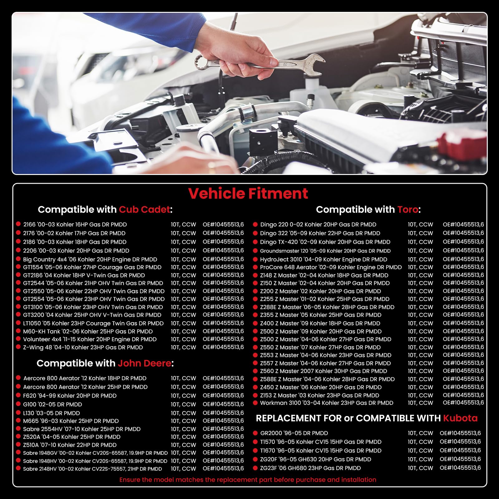 AotoParts 10 Teeth Starter Replacement Compatible with Kohler 15-31HP 2509808 2509809 2509811 John Deere Toro Cub Cadet Scotts Thomas Grasshopper Mower Tractor SDR0291 41012182 41012182R 41012414