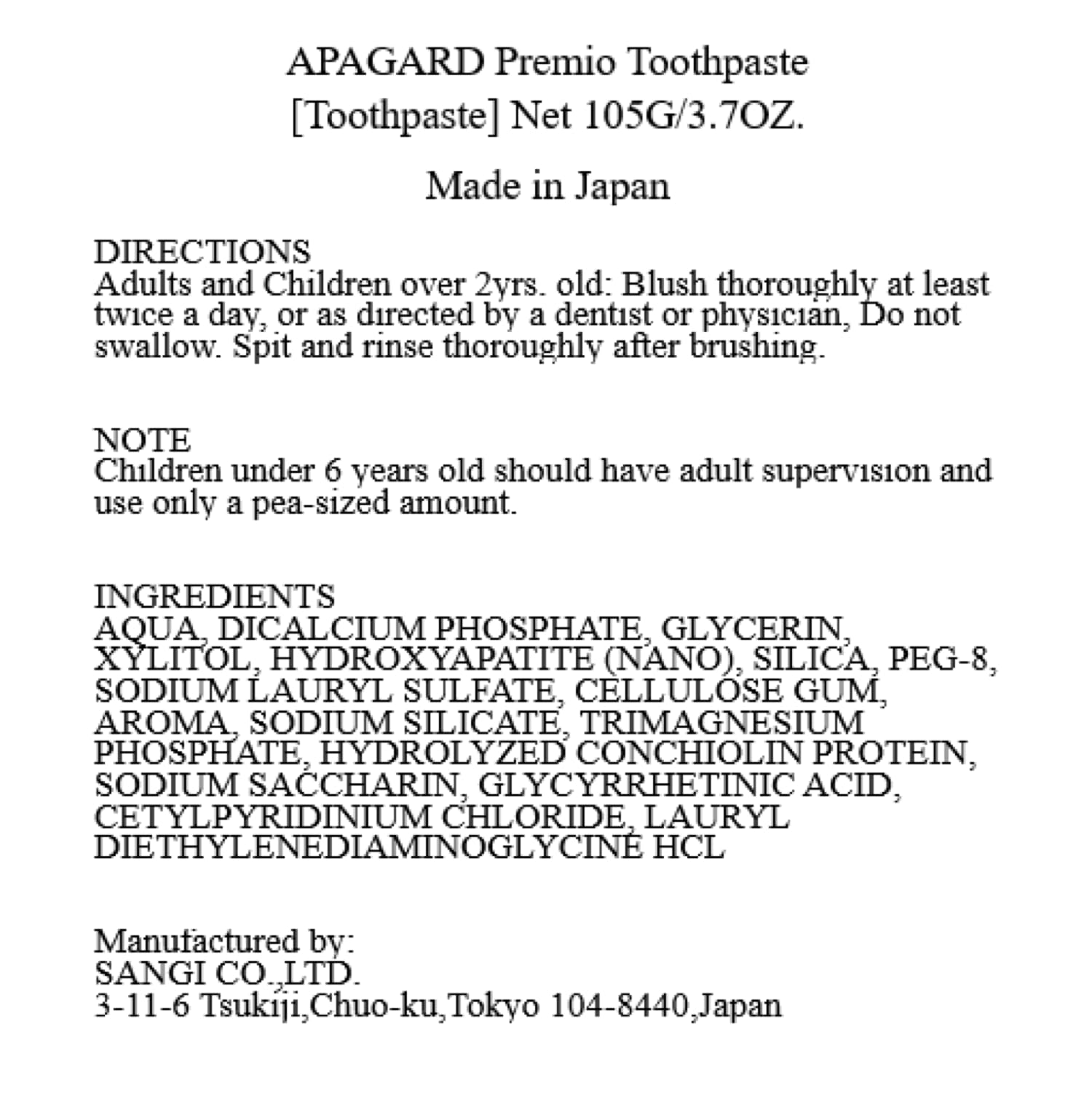 - APAGARD, Japan's leading toothpaste series for naturally beautiful teeth, is now available in the US. Discover the secret of naturally beautiful teeth from Japan. Contains Sangi's original nano-hydroxyaptite (nano-mHAP), almost the same substance as the hydroxyapatite that our teeth are made of, first synthesized in the 1970s by Sangi Co., Ltd