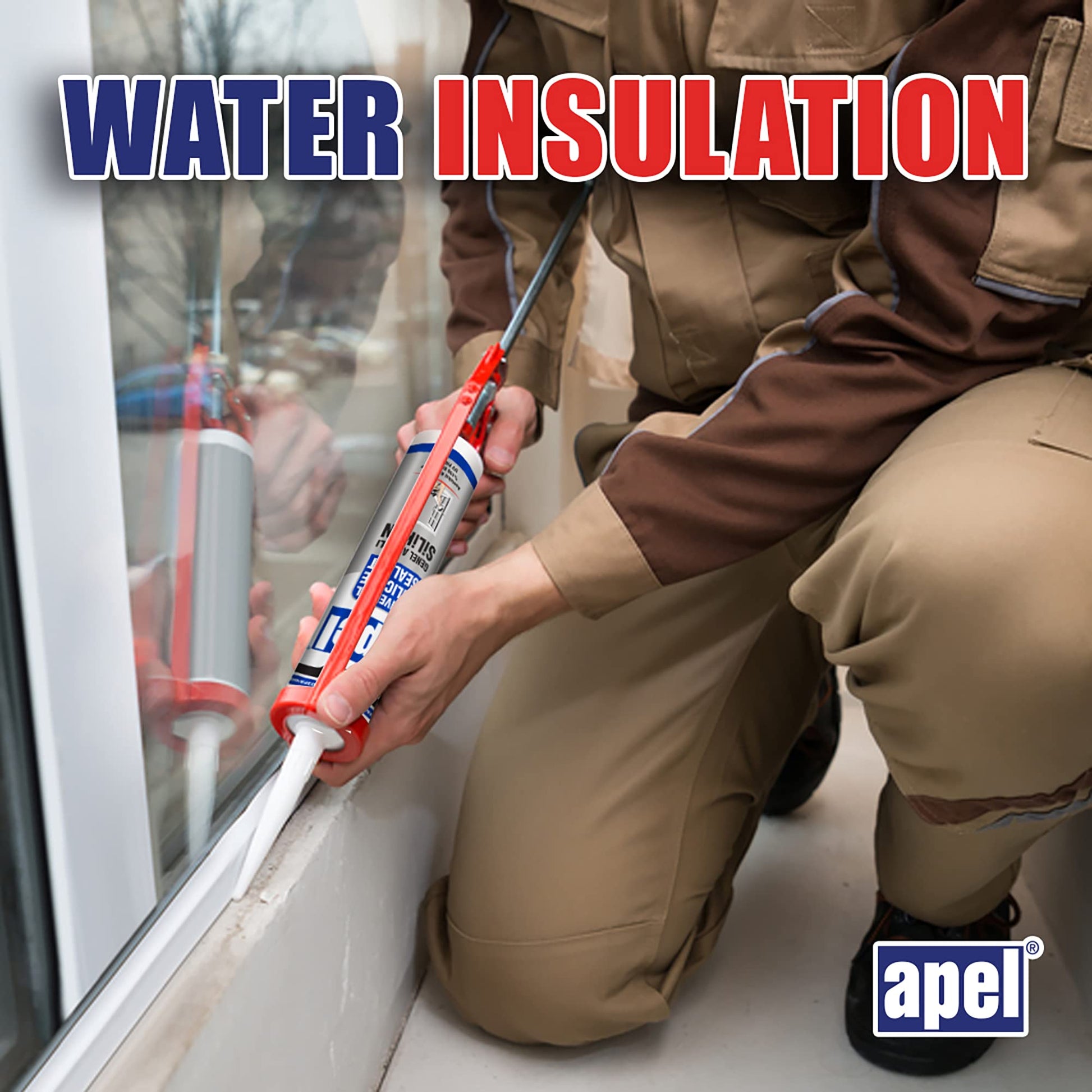 apel All Purpose Clear Silicone Sealant Waterproof (12 x 10.5 fl.oz.), 100% Silicone Caulk, Weatherproof & Flexible Adhesive Sealant for Indoor and Outdoor Use, Transparent - 12 Pack