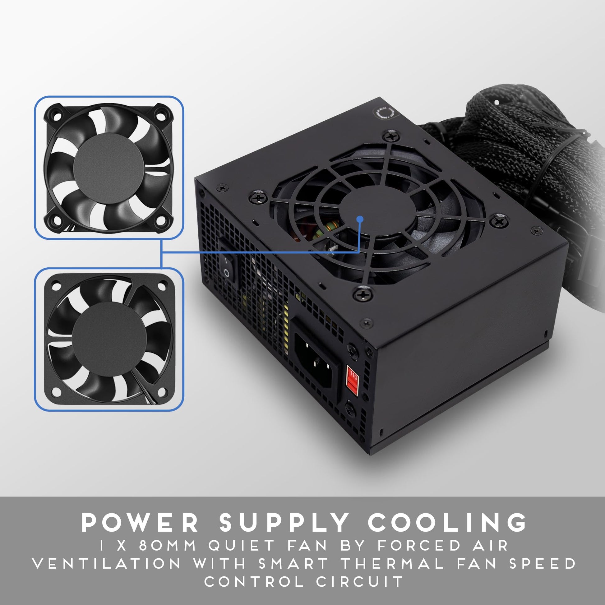 Details: Apevia SFX-AP500W power supply is an excellent choice for compact, small form factor systems. With 500W of steady output power, lots of cable connectors and a built-in 80mm automatically thermal sensing fan it is sufficient and quiet to run a new built system or to replace a lagging/bad power supply in an older small form factor system with a wide range of peripherals and versatile applications.