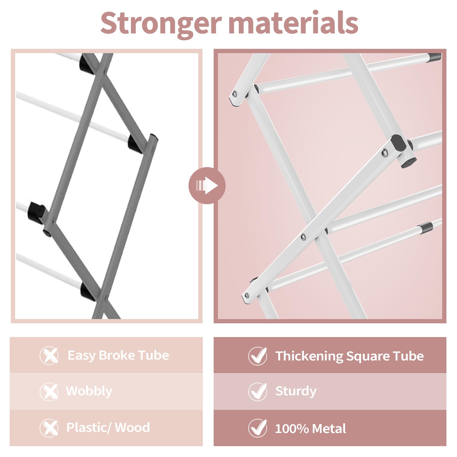 - Lightweight Storage: This foldable drying stand for clothes comes with non-skid rubbers at the bottom that won't scratch the floor. Its collapsible design allows for easy storage and transportation, making it perfect for use in the laundry room or on the patio, or for stashing away in a corner to save space.