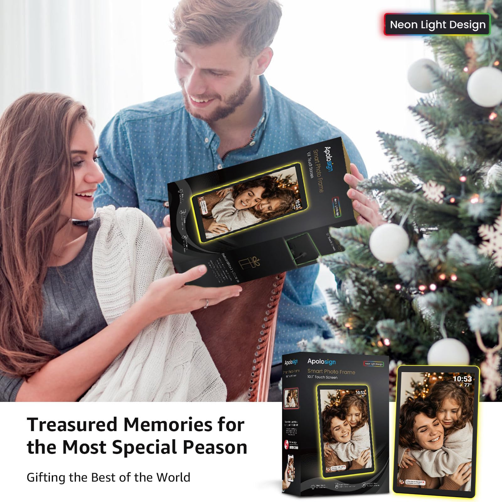 ApoloSign Neon Light Digital Picture Frame - 10.1" HD Display | AI Color-Changing LED Strip Digital Photo Frame | Quick Share Photos/Videos, Easy Setup in Frameo App | Best Digital Frame for Gifting
