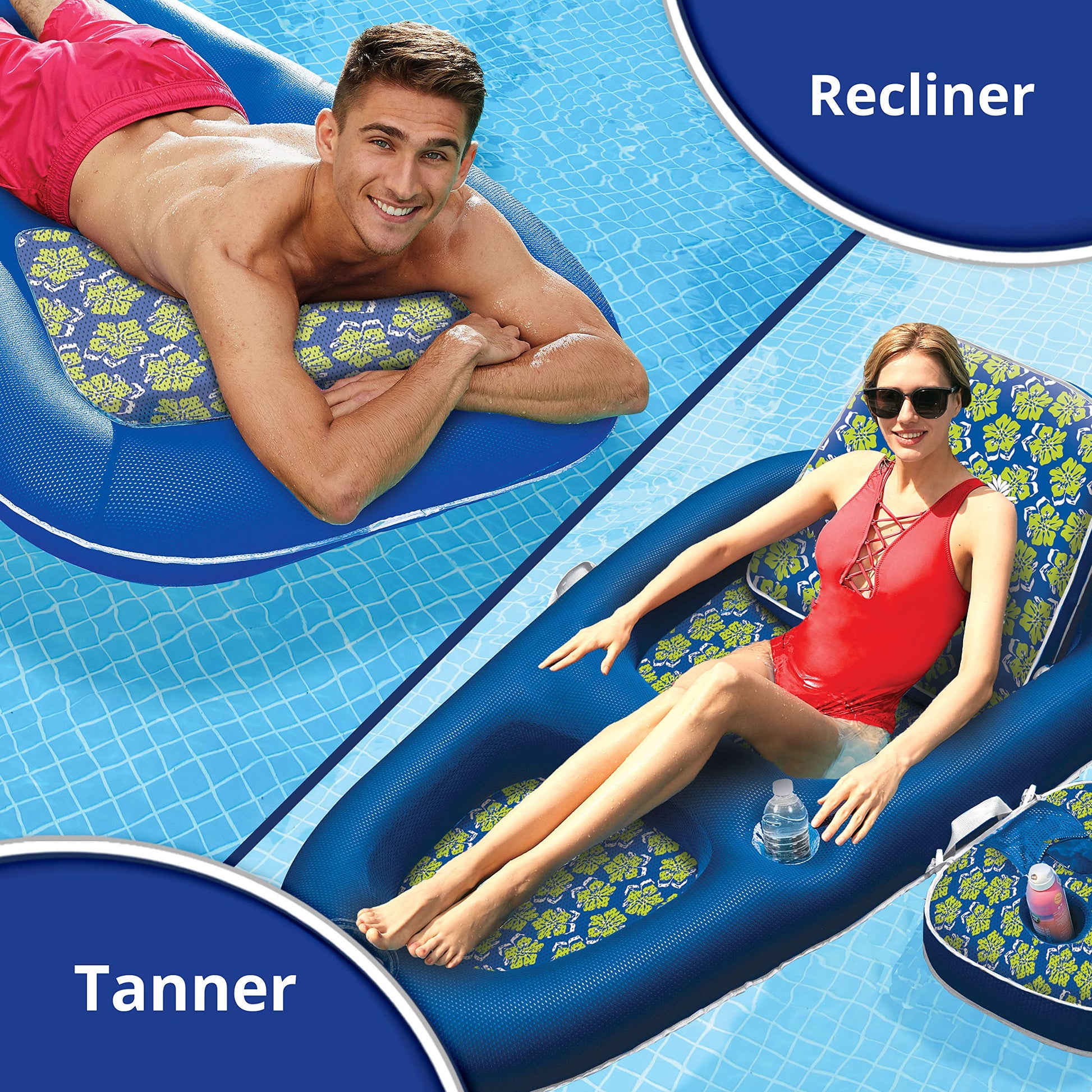 - Campania ultimate lounger: This pool float is the ultimate recliner and tanner; get the premium pool lounger experience in royal/lime hibiscus.Easily inflates/deflates with the DuoLock Inflation System and With its wire-free design, lounge folds for portability and storage