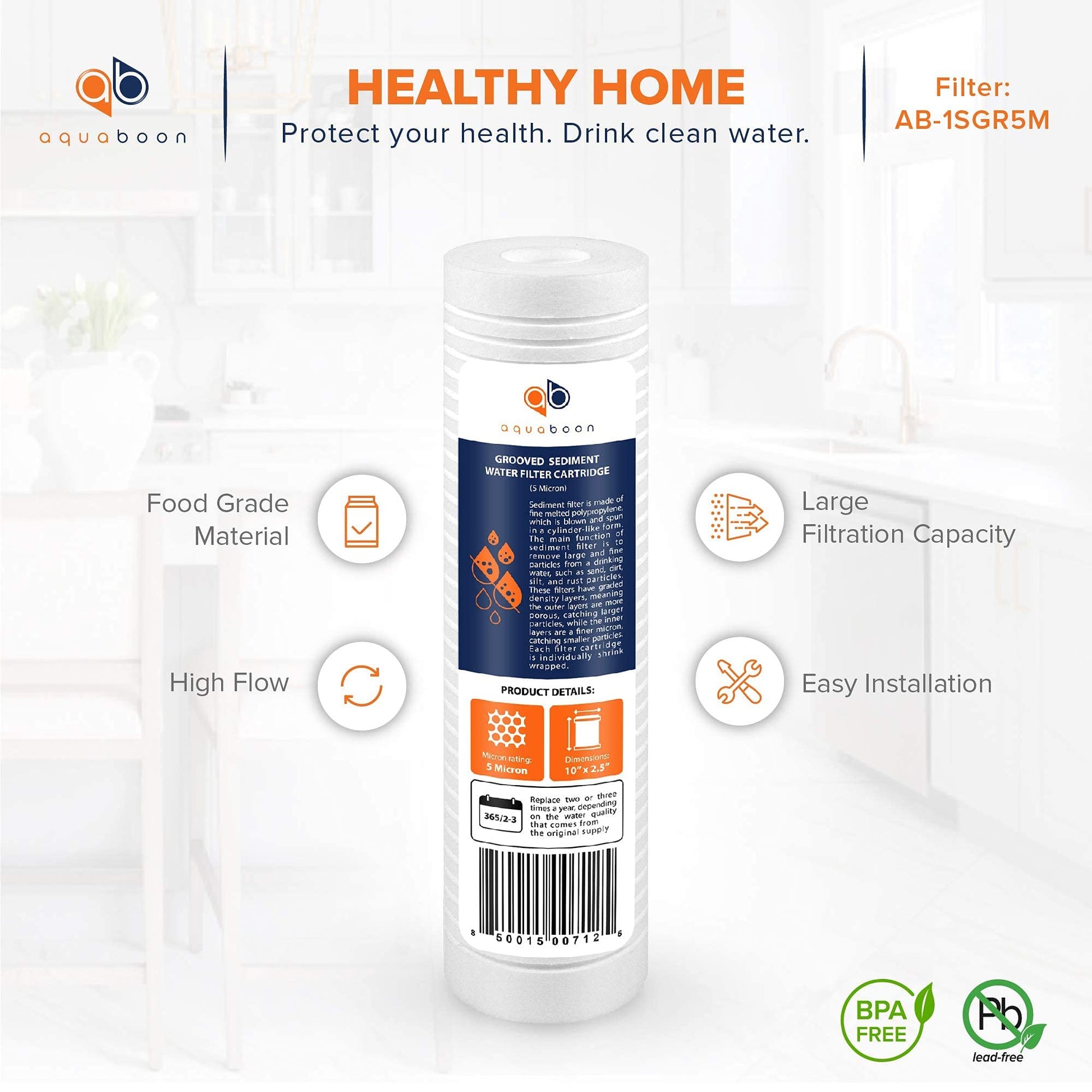 - Effortless Installation and Universal Fit: Enjoy easy, tool-free installation with Aquaboon’s 10 inch water filter cartridge. Compatible with 10x2.5 filter housings, sediment filters fit seamlessly into whole home water filtration systems and RO systems.