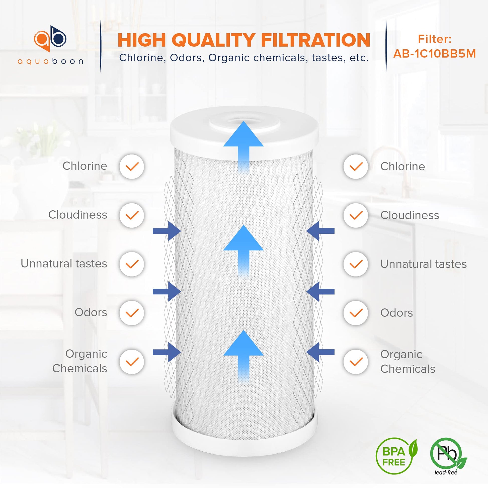 - Superior Carbon Filtration Power: Aquaboon’s 10 x 4.5 whole house filter cartridge eliminates chlorine, chemicals, and impurities. With its premium coconut shell activated carbon, house water filter transforms your tap water into a refreshing experience.
