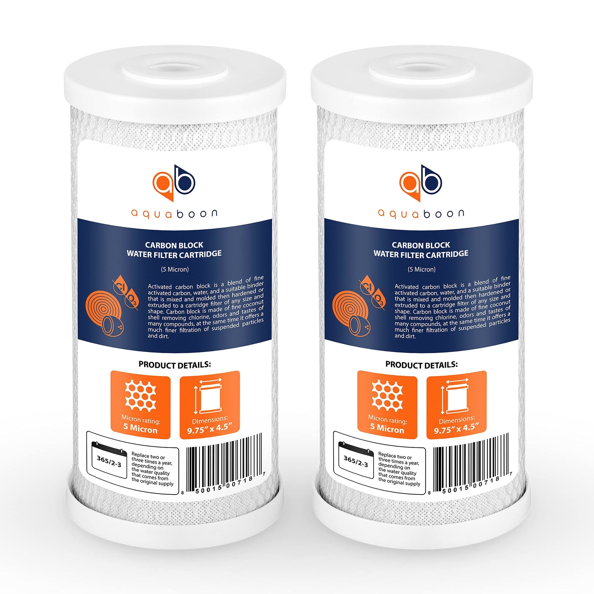 Aquaboon 5 Micron 10x4.5 Carbon Block Water Filters Whole House CTO Water Filter Replacement Cartridge Compatible with FXHTC, CB-BB-10, EP-BB, 2-Pack
