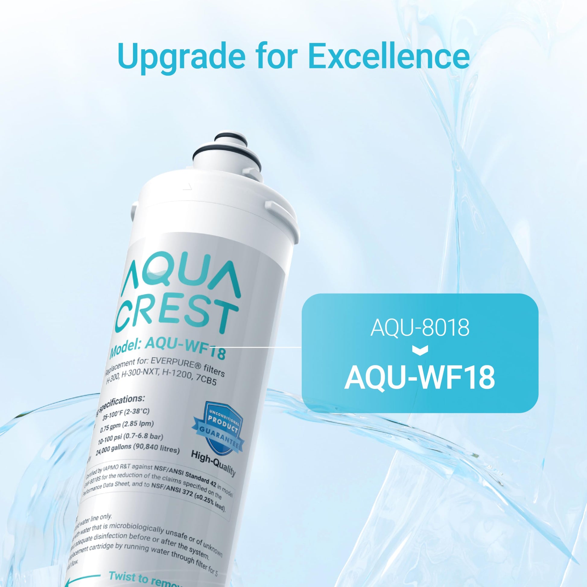 - 【New upgrade&Long-lasting service life】After advanced upgrade, the model number is changed from AQU-8018 into AQU-WF18. To enjoy fresh water, it's recommended you replace the filter every 12 months or 24,000 gallons. Whichever comes first will vary based on water quality.