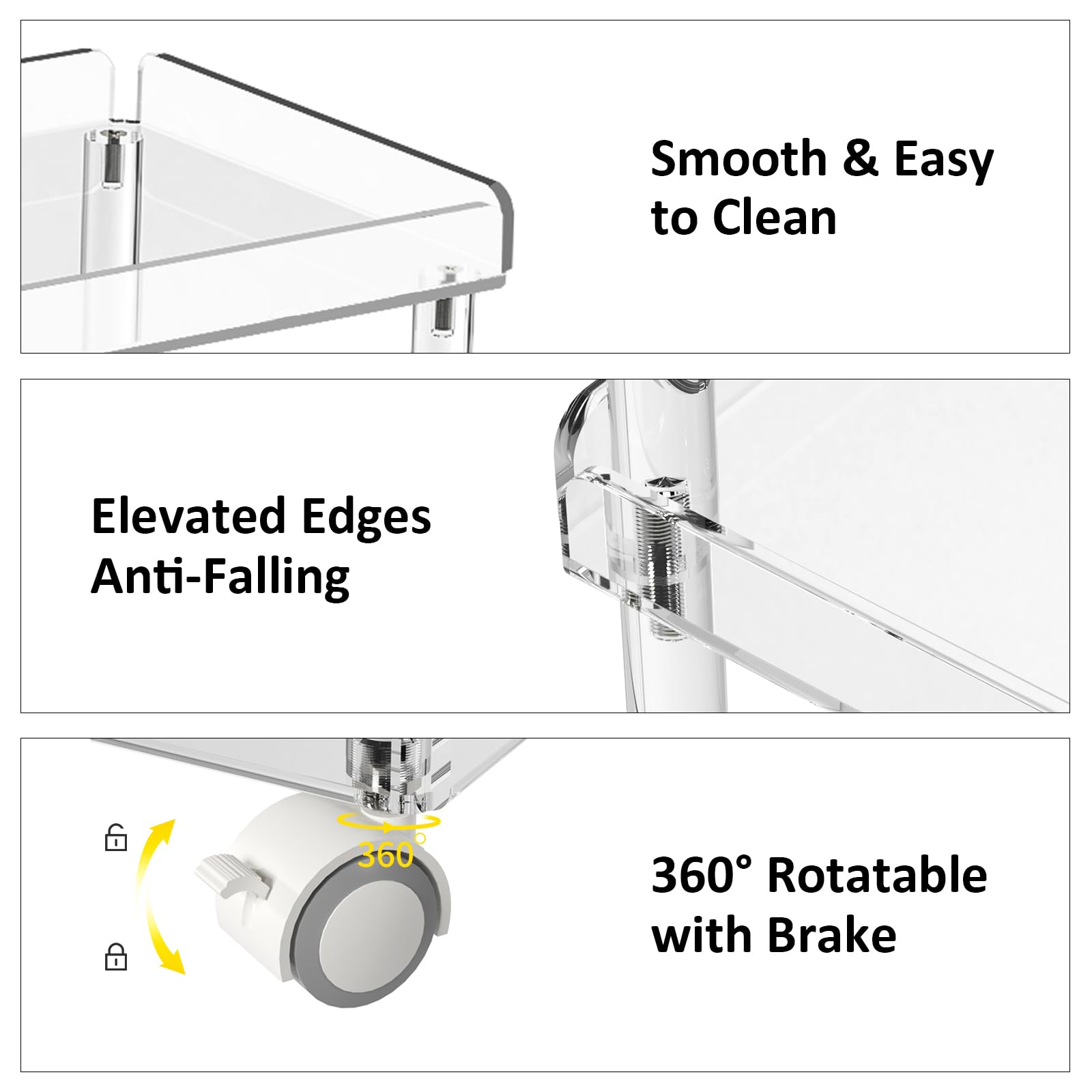 - Practical Rolling Cart - 4 universal wheels with brakes for easy storage and smooth movement. It has elevated edges to prevent items from falling when the cart moves.