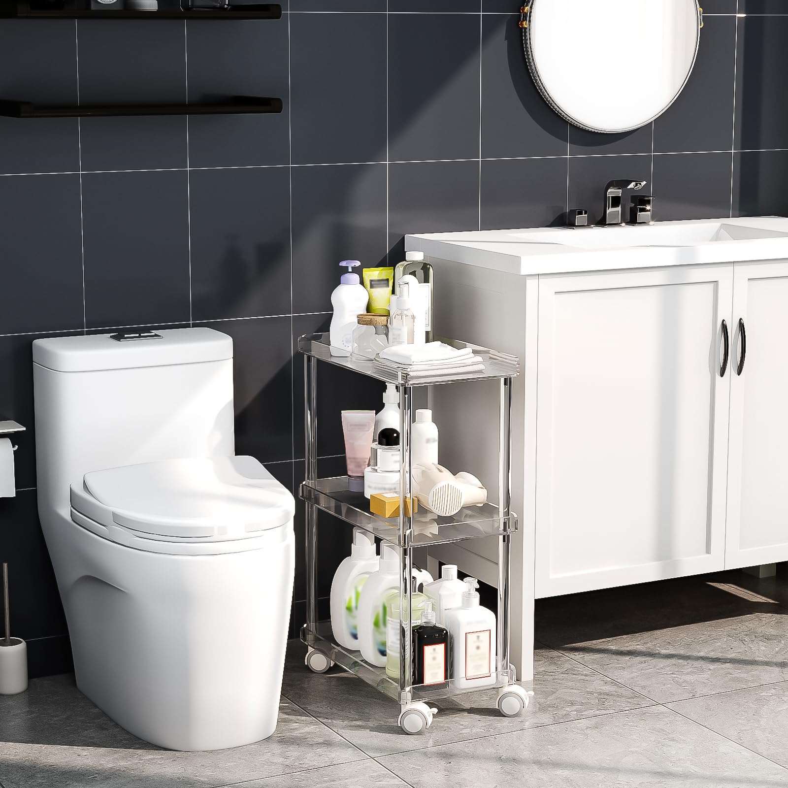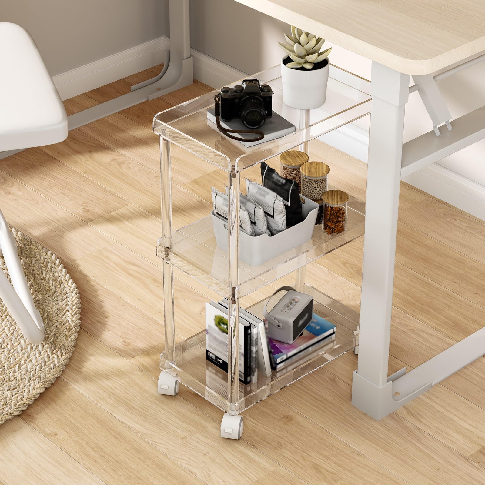 Aquiver Acrylic Slim Storage Cart - 3 Tier Utility Rolling Cart - for Kitchen, Bathroom, Living Room, Laundry, Narrow Places - 15.6'' L x 8.7'' W x 23.6'' H