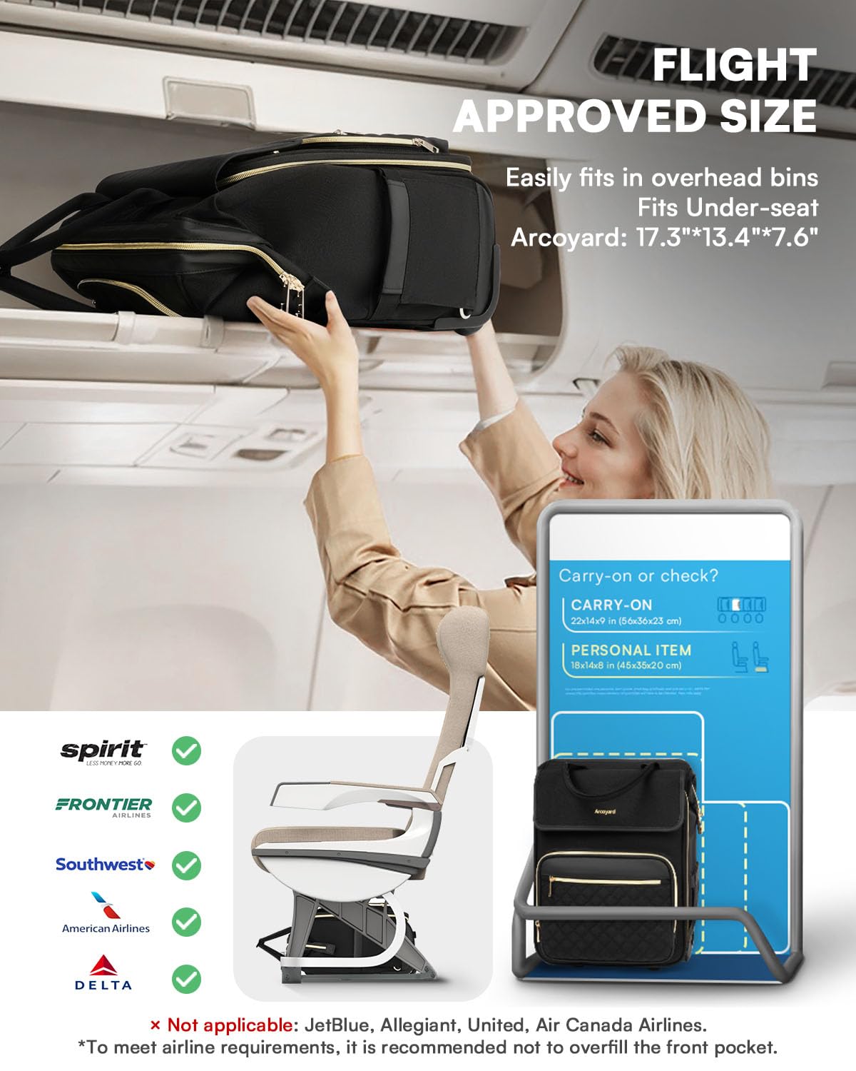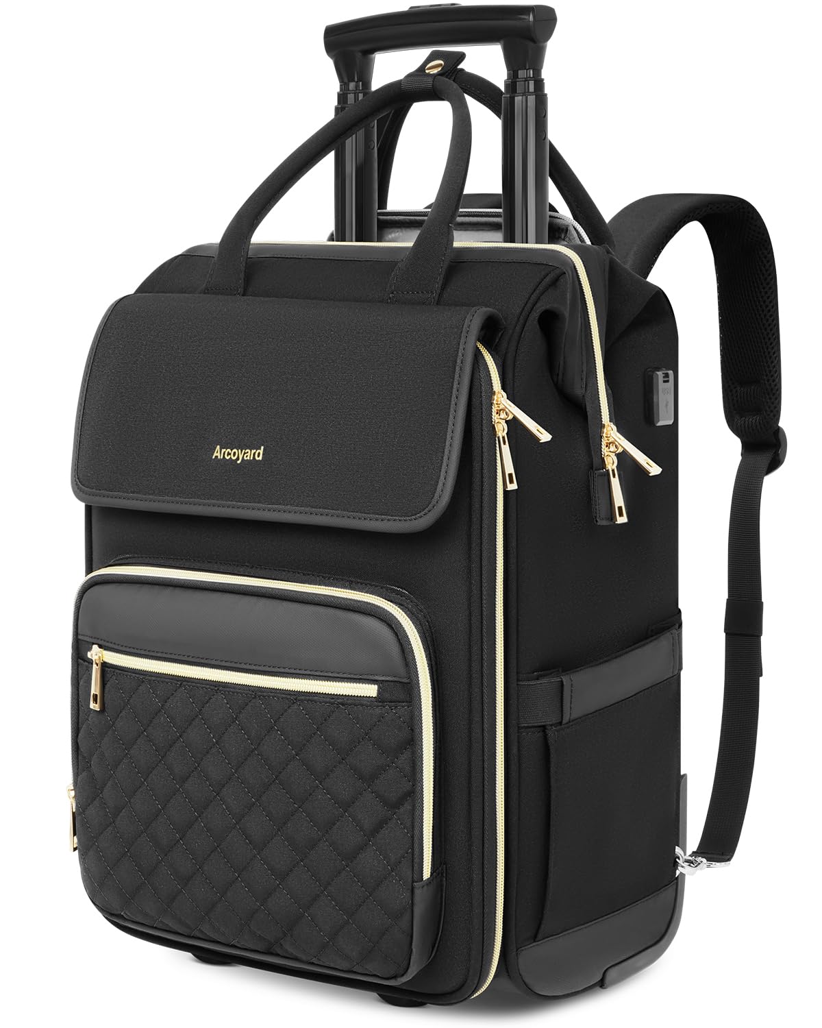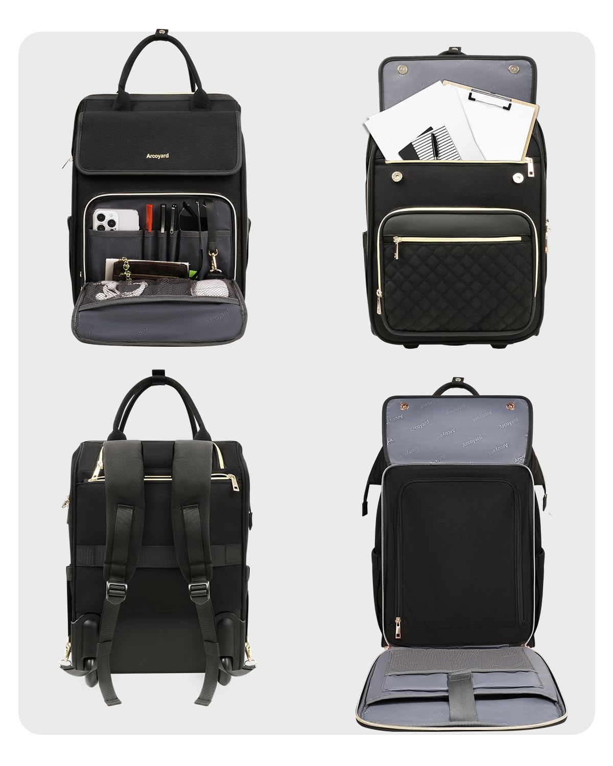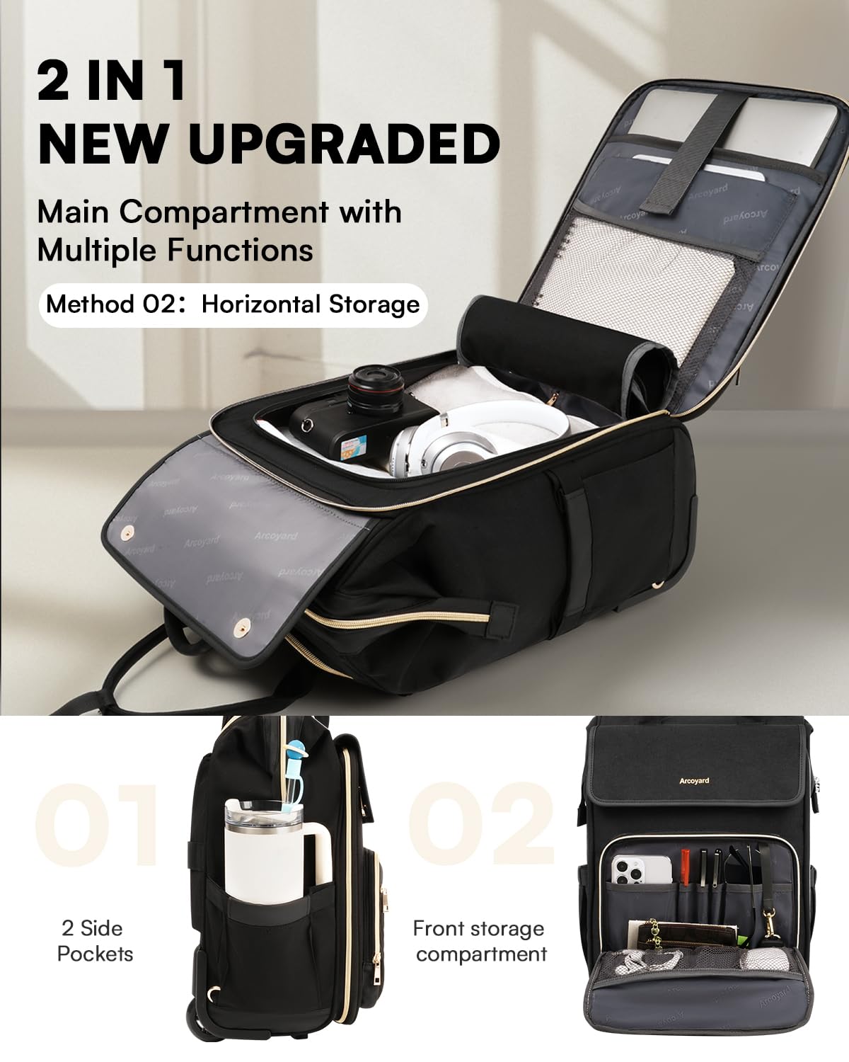 Arcoyard Rolling Backpack for Women, Travel Rolling Laptop Backpack with Wheels, Vertical & Horizontal Storage 2 In 1, Flip-Top Design, Water-Resistant Overnight College Underseat Carry on Luggage