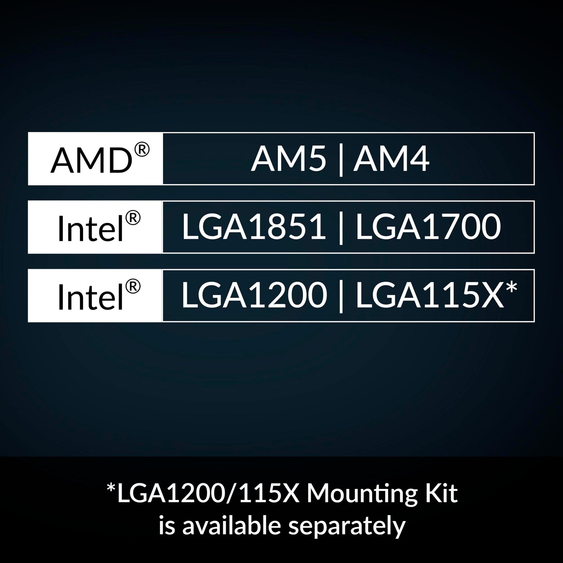 - CONTACT FRAME FOR INTEL LGA1851 AND LGA1700: Improved contact pressure distribution through Intel mounting frame for efficient heat transfer thanks to even CPU contact surface