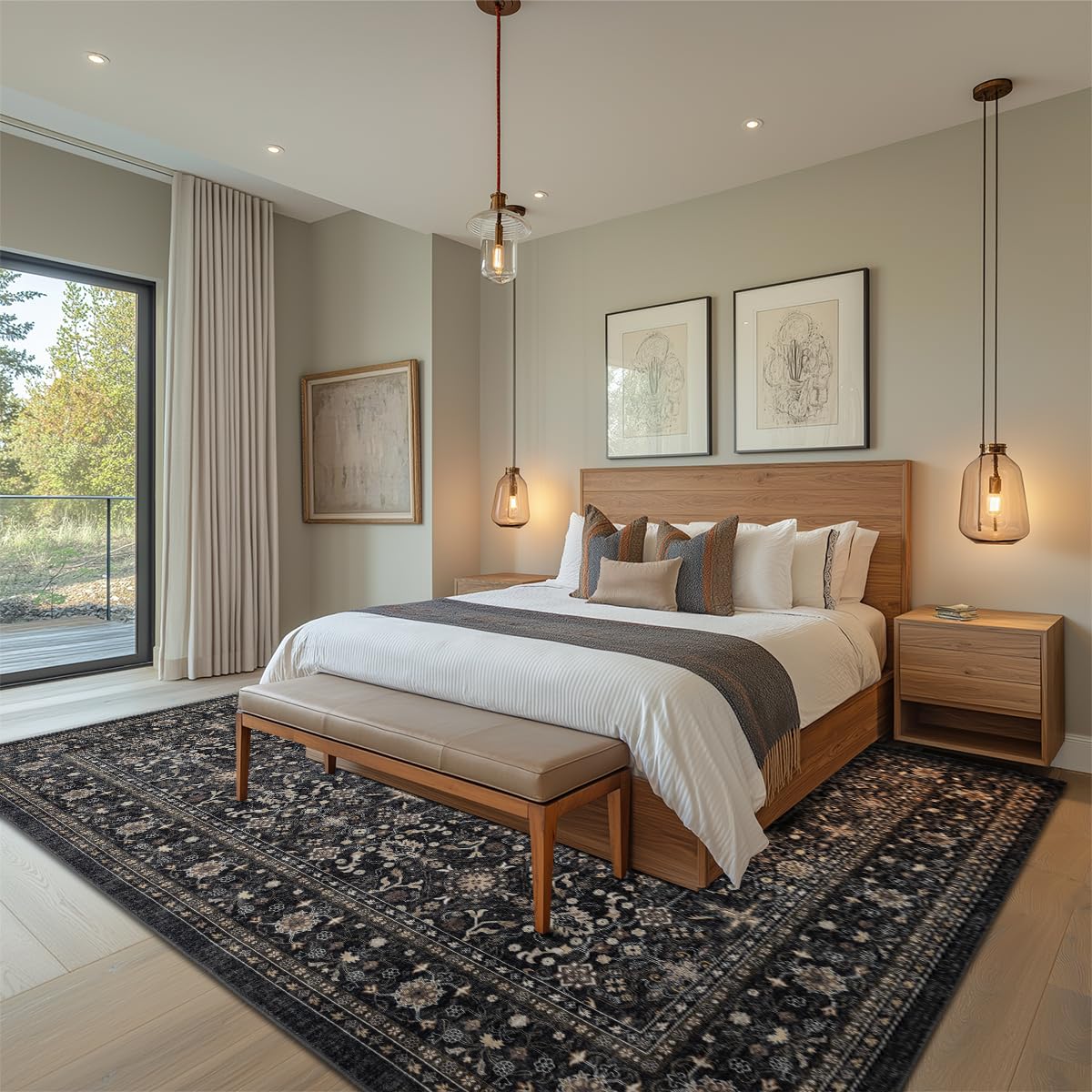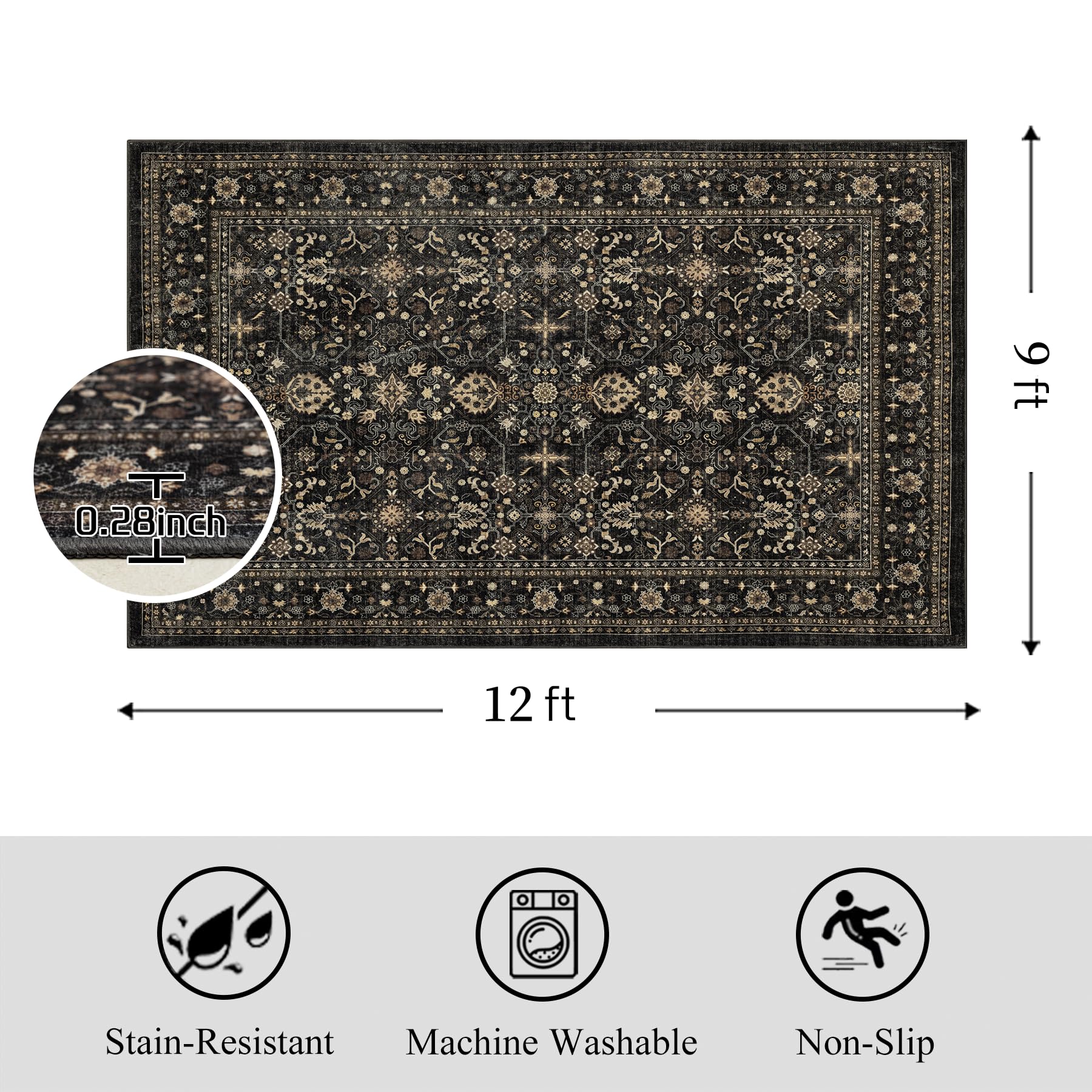 Area Rug Non Slip Machine Washable Ultra Soft Living Room/Bedroom/Kitchen/Outdoor/Classroom Black Grey, 9'×12'