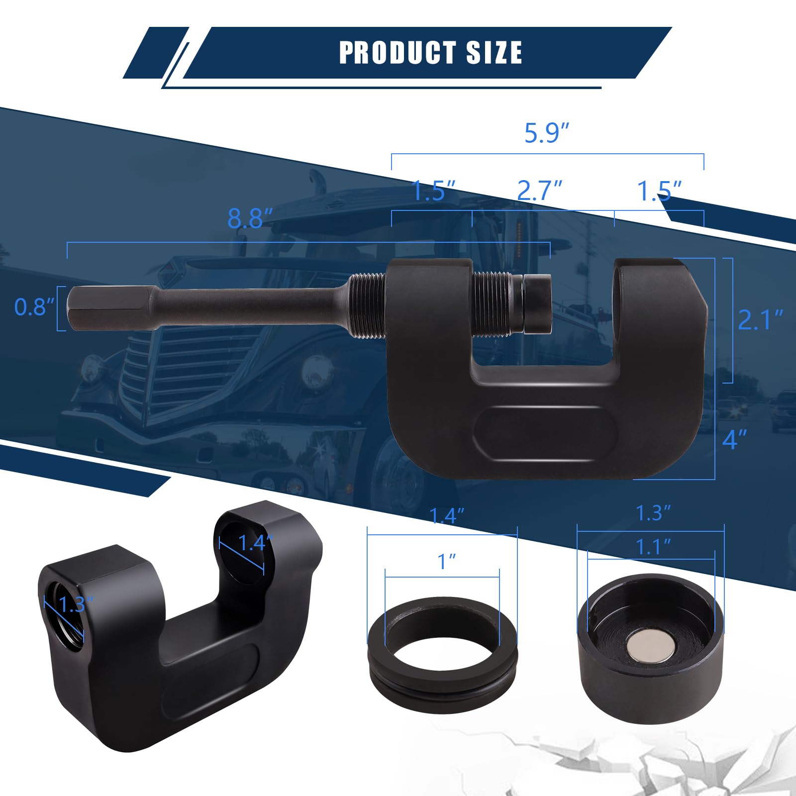 - Simple operation with standard tools: Features a standard 7/8-inch hex drive interface compatible with common impact wrenches or torque tools, and includes a bushing removal adapter, enabling safe operation by a single person.