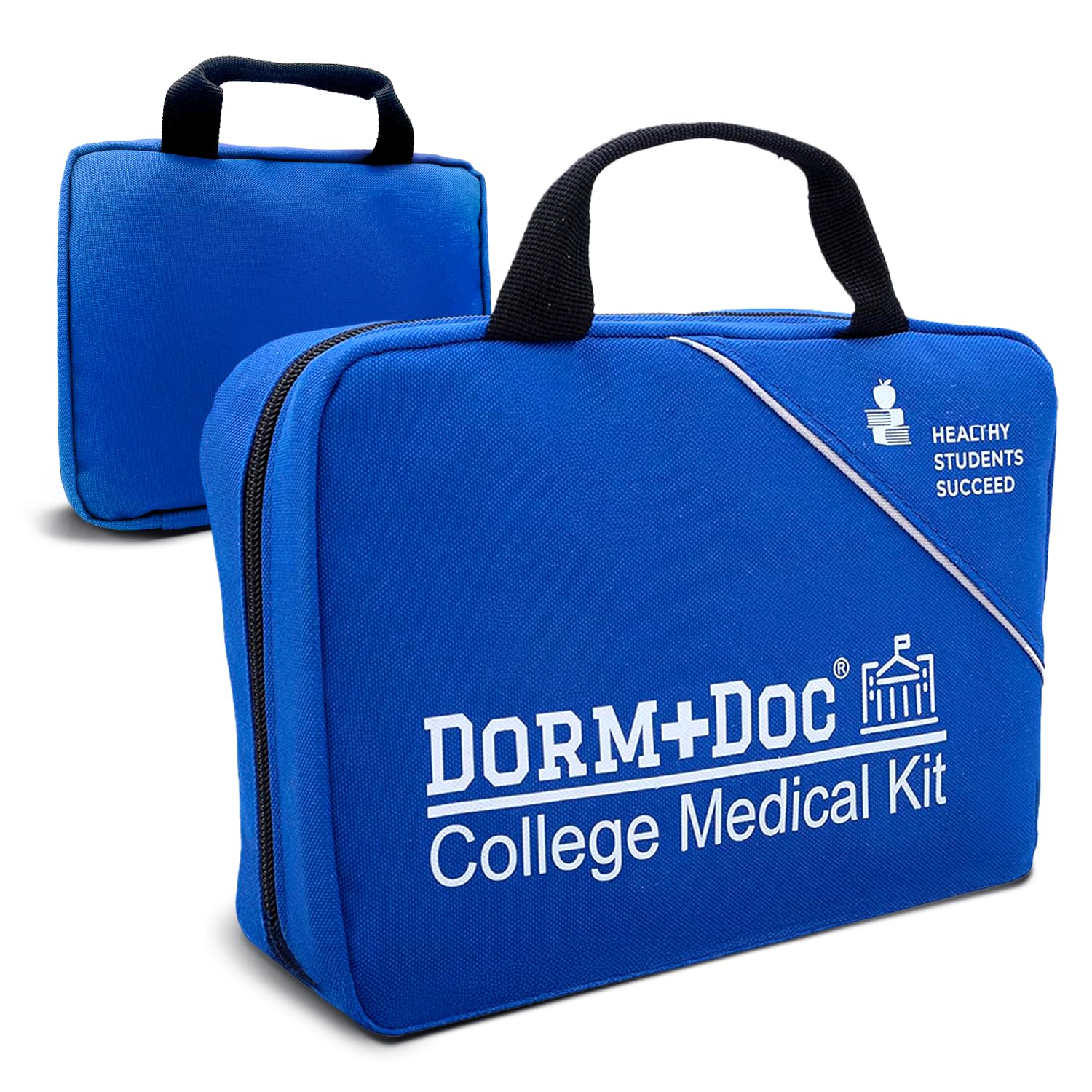 DormDoc College First Aid Kit – Compact Emergency Medical Kit for Dorm Rooms, School, Sports – with Bandages, OTC Medicines for Relief, Gauze, Quick Care Set – Portable Health Kit - 175 PCS, Blue