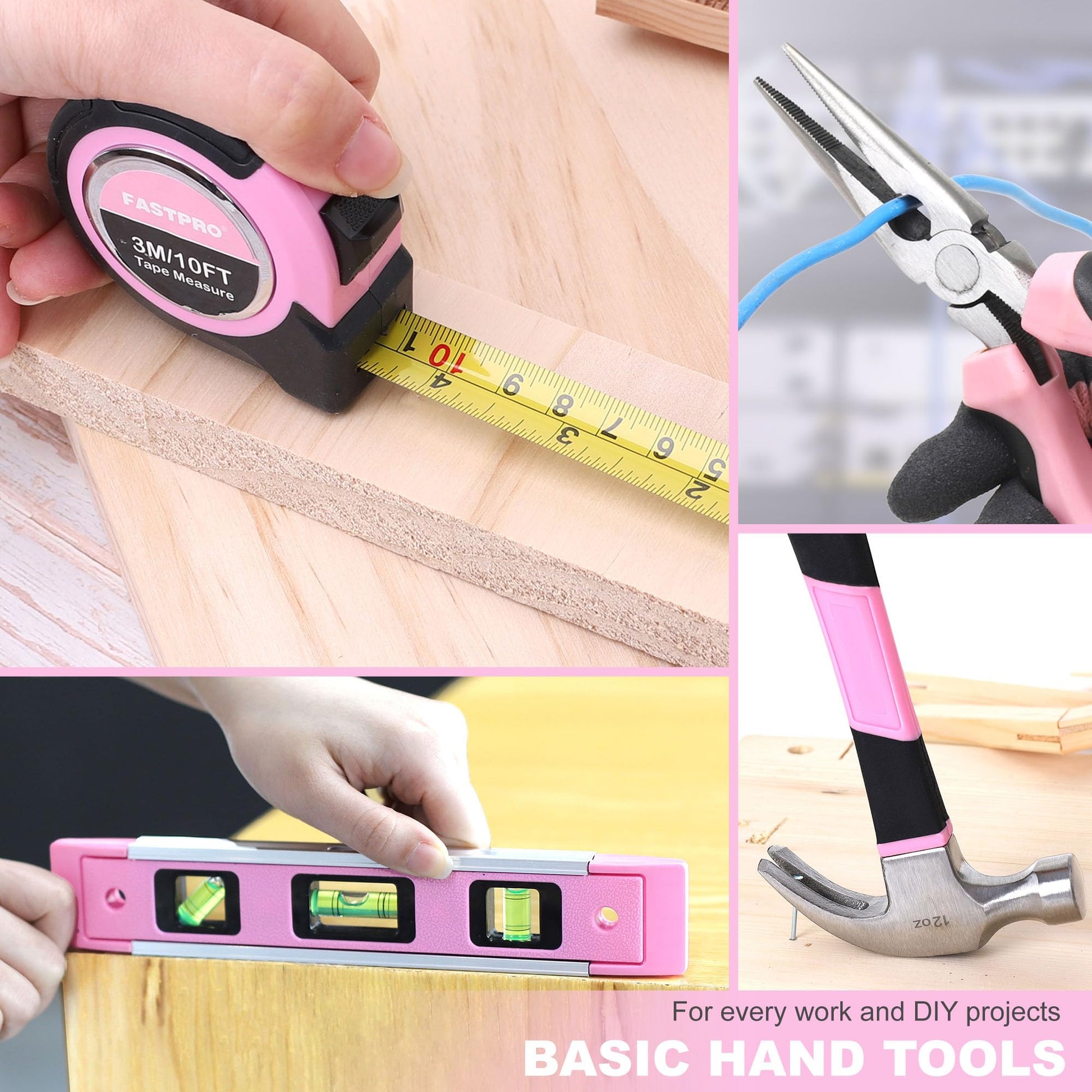 - The pink tool set contains almost every basic hand tools you need for work and DIY projects around the house