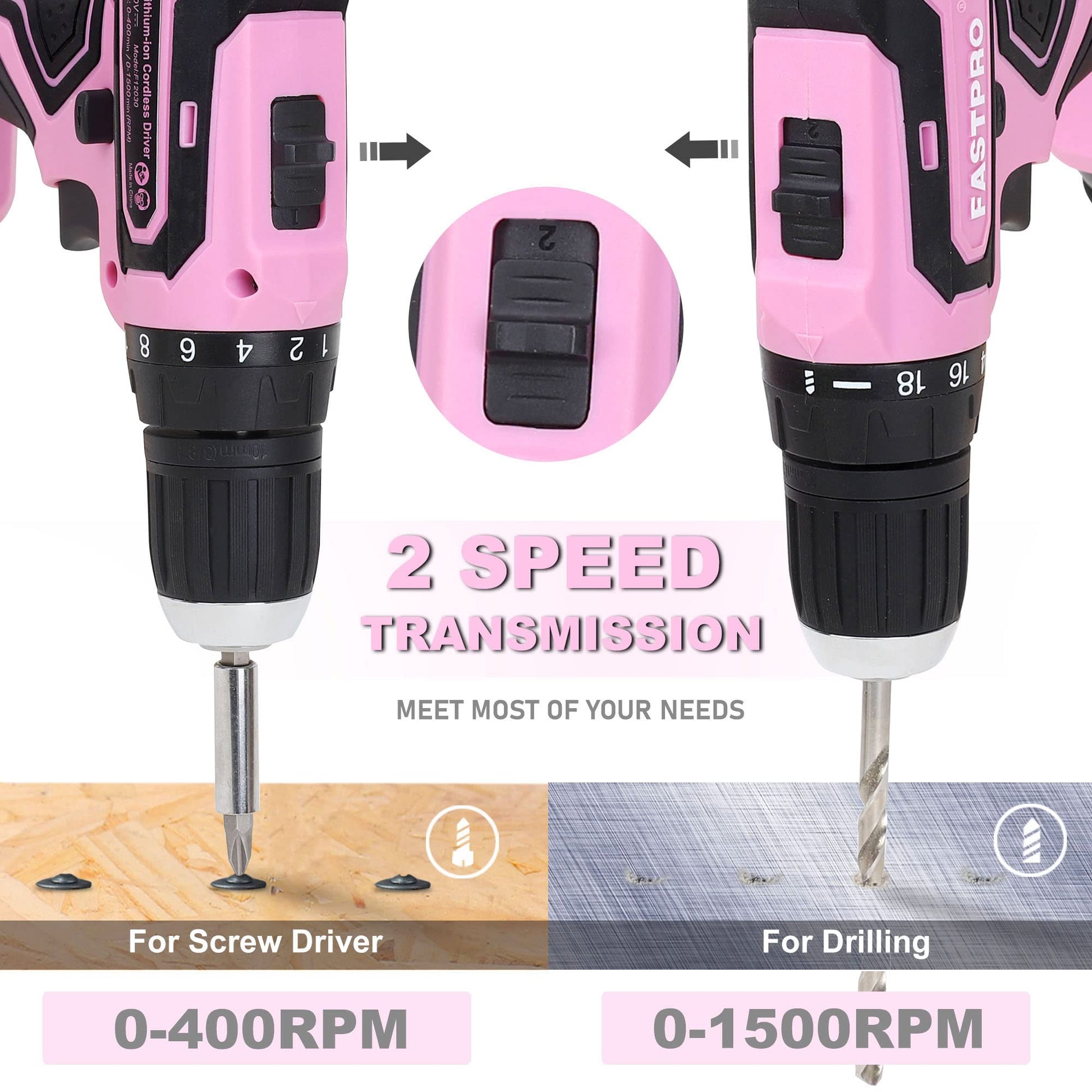 - This pink drill set for women is perfect for your home use or gifts. Notice:This is a carbon brushes drill. It is normal that the brushes produce sparks from the electromagnetic charge which are clearly visible inside the drill.