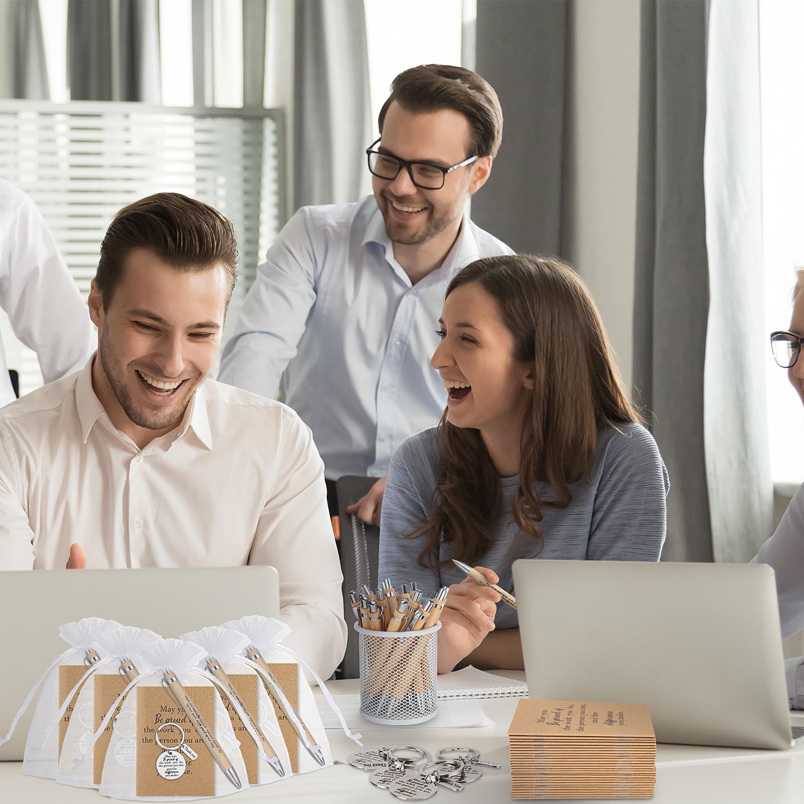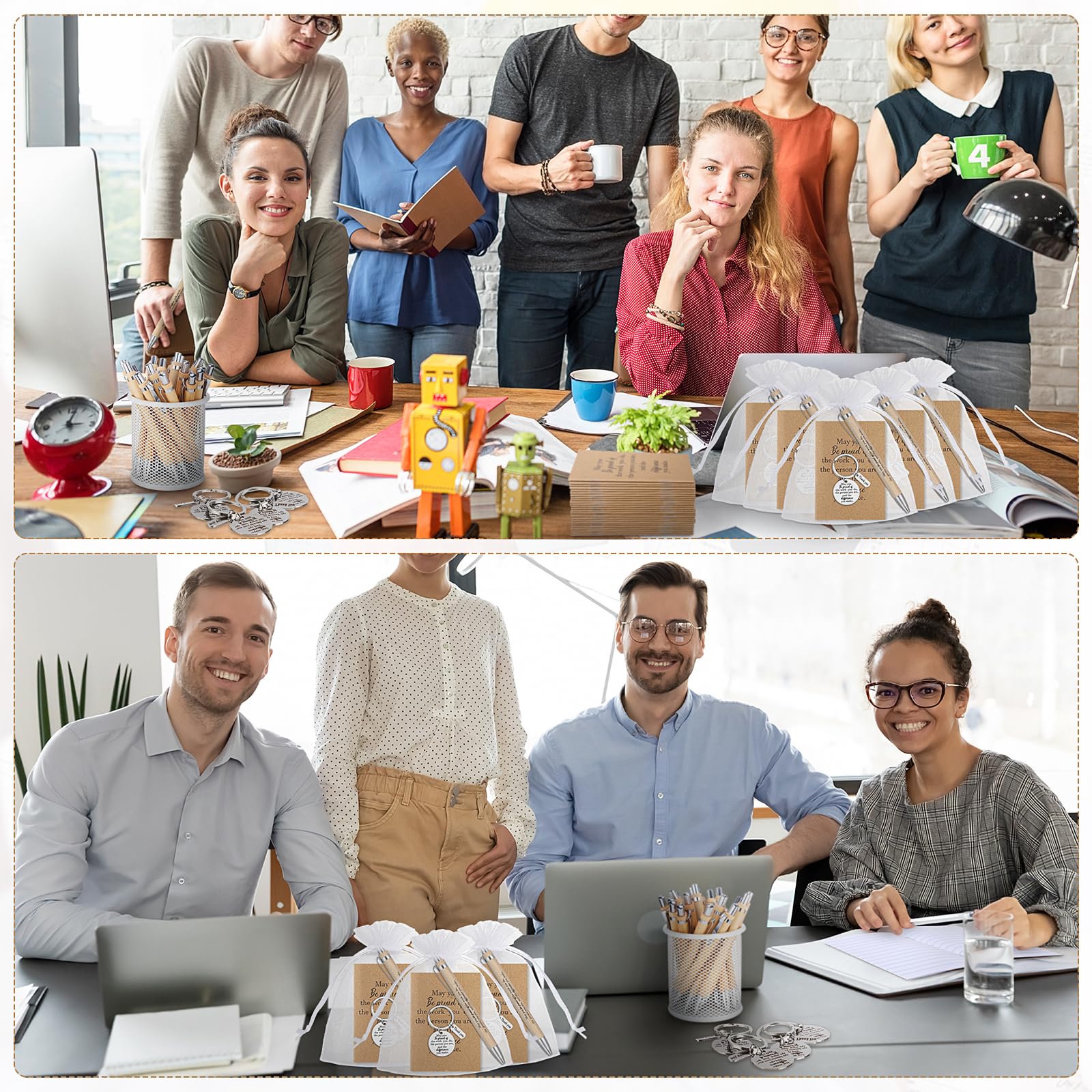 Kosiz 50 Sets Employee Appreciation Gifts Bulk Thank You Notebooks Bamboo Pens Keychains Back to School Gifts for Students