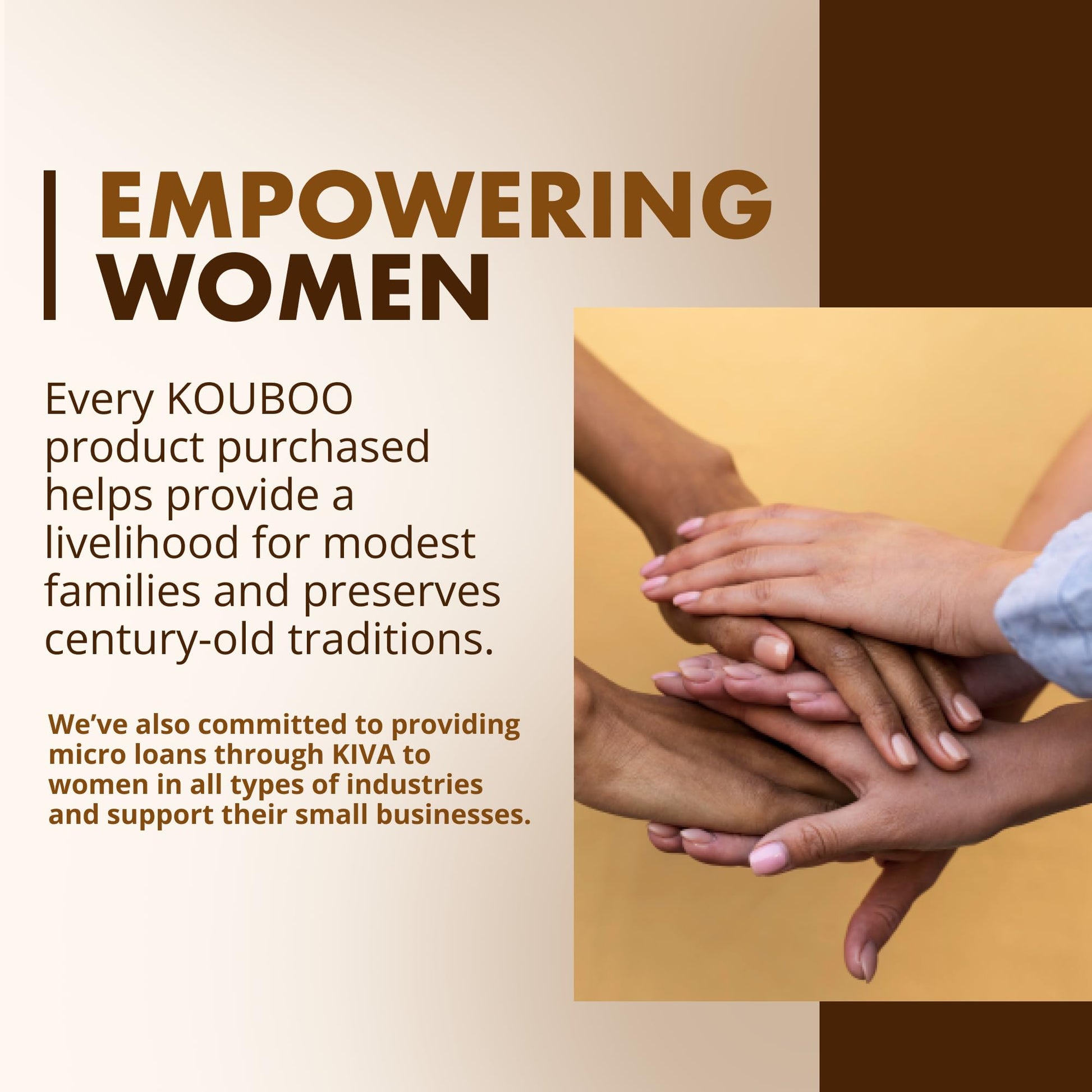 - EMPOWERING WOMEN: Every KOUBOO purchase supports families and century-old traditions while funding micro-loans for women via KIVA, strengthening communities and making a lasting impact