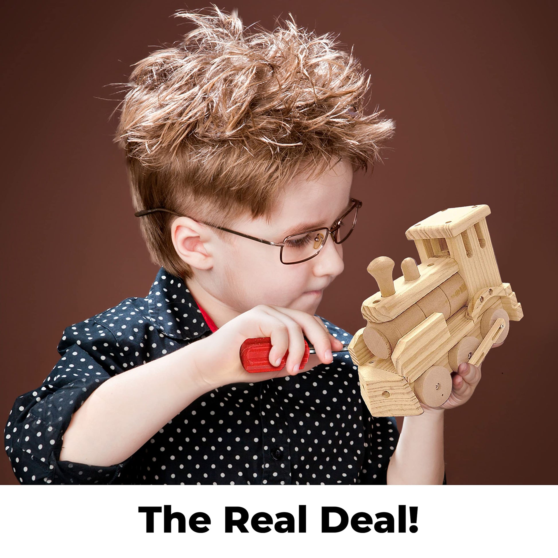 - The Real Deal! Real Wood and Real Tools, Not just sticking everything together with glue. Wood pieces are real- not foam or faux wood. Kids will love using the screwdriver and screws to put this together just like adult woodworking!