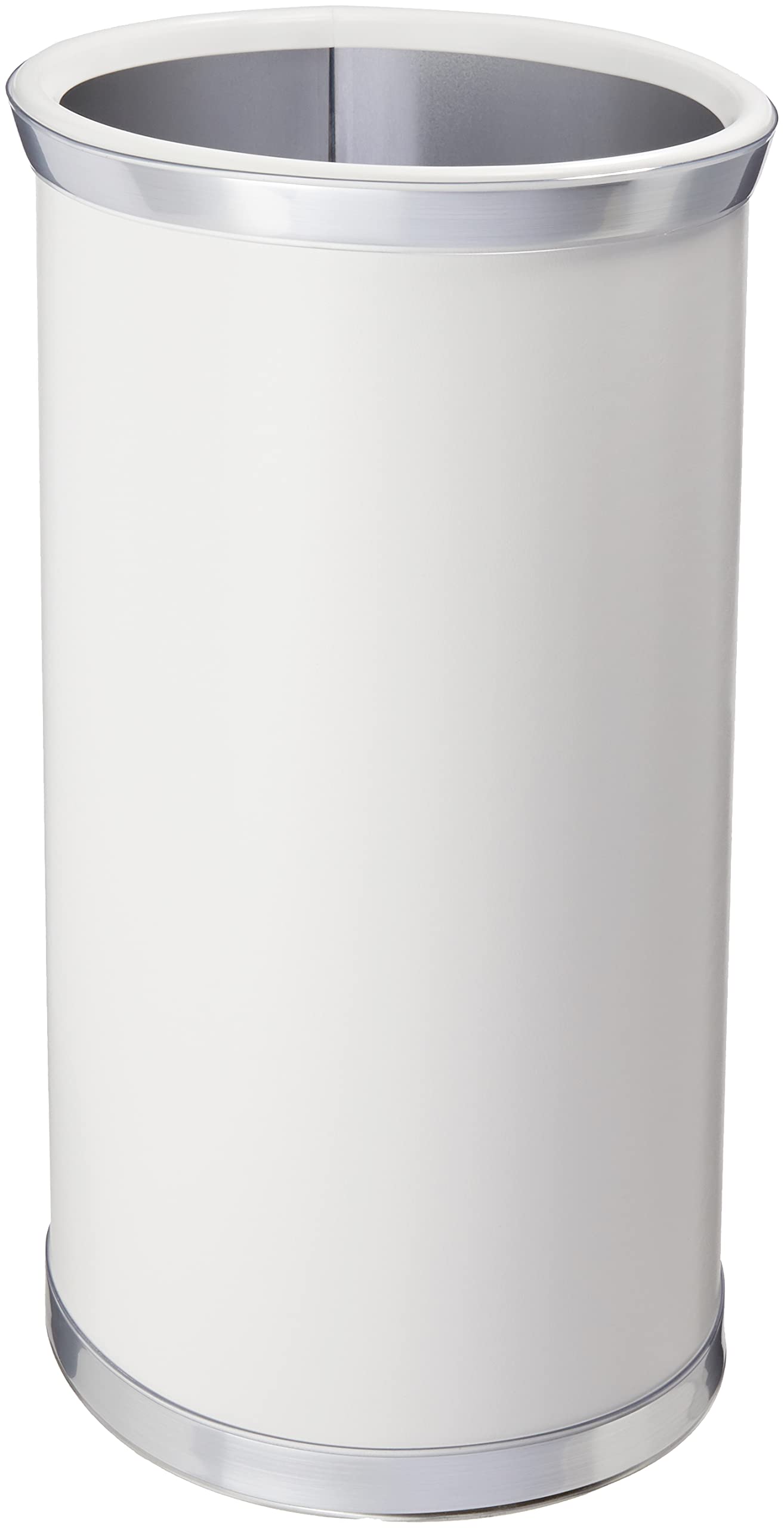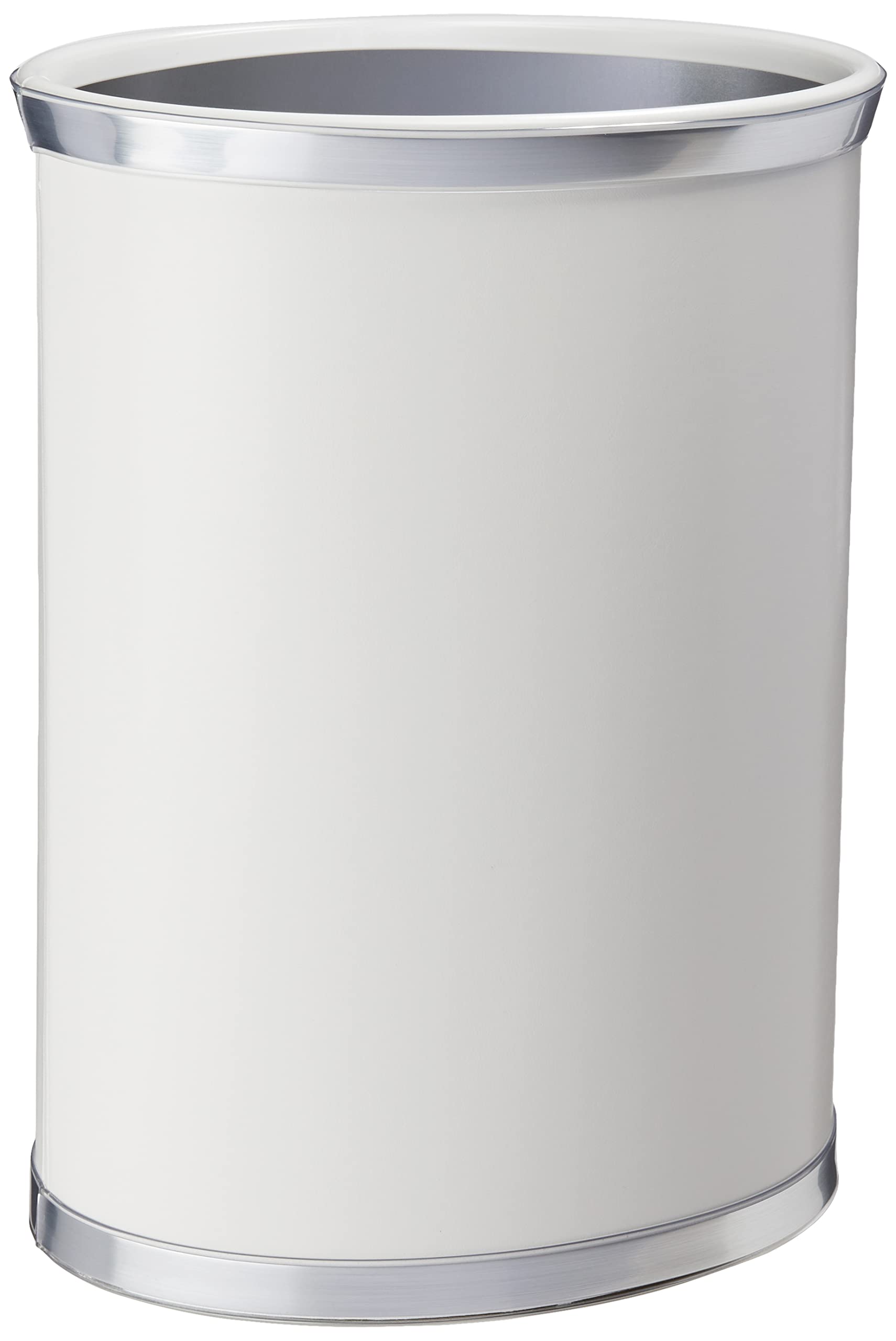 - Kraftware's Classic Sophisticates Collection Oval Waste Basket in White with Brushed Chrome sits atop bumpers to avoid any damaging bumps and tumbles.