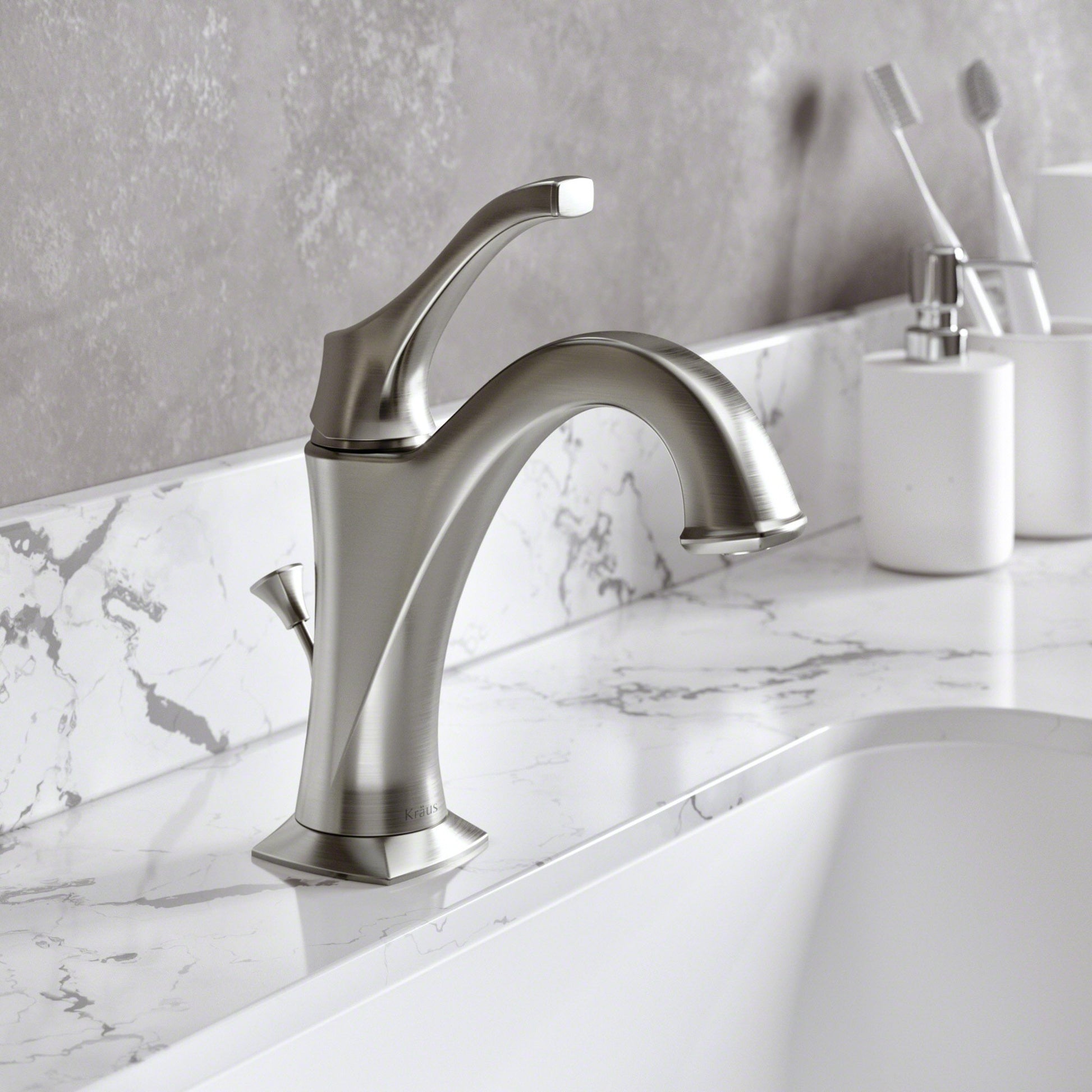 Details: Add elegant style to any bathroom with the KRAUS Arlo™ basin faucet (KBF-1201SFS). A stunning combination of clean, refined lines and an arched spout give the classically-inspired Arlo™ basin faucet a timeless appearance. The gracefully curved single lever handle complements the shape of the spout, and allows you to easily adjust water temperature and volume. Featuring an eco-friendly aerator for maximum water savings, this faucet delivers up to 1.2 gallons per minute with a splash-free aerated stream. For a personalized look, Arlo™ comes in a choice of Spot-Free all-Brite™ Stainless Steel, Chrome, Oil Rubbed Bronze, and Matte Black finish. A KRAUS lift rod drain and deck plate in matching finish are included for convenient installation and a seamless look.