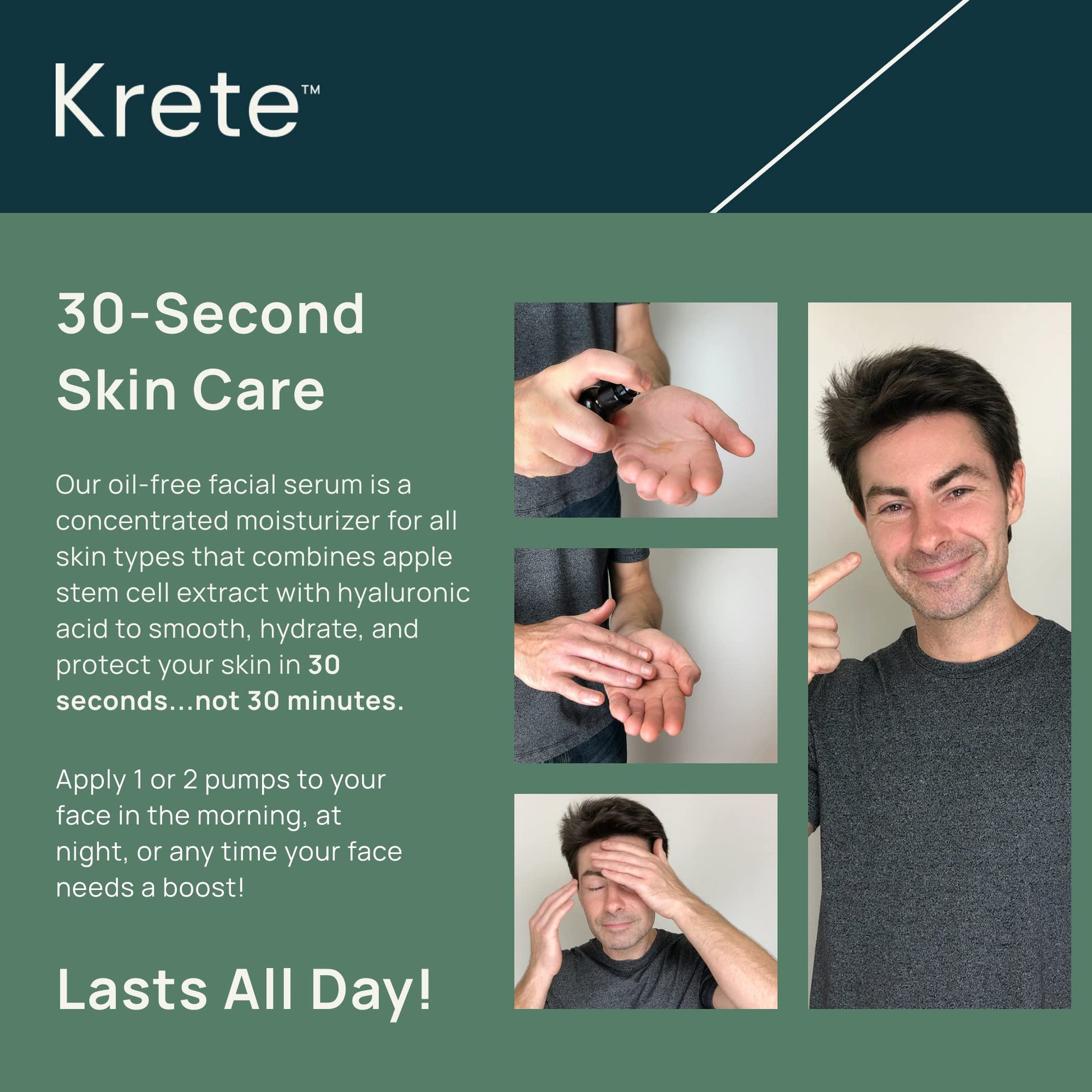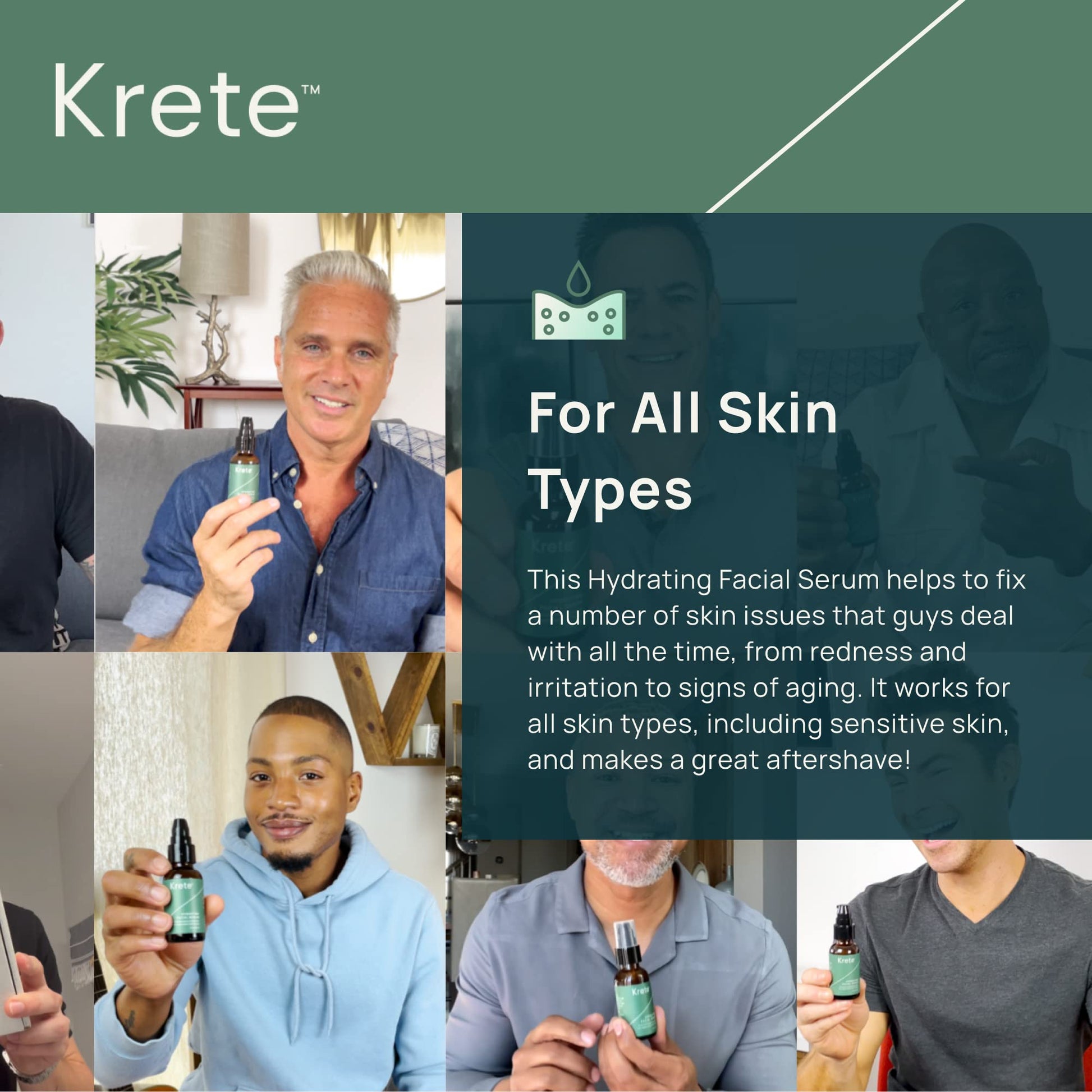 KRETE 30-Seconds Hydrating Facial Serum for Men - Helps with the Appearance of Aging, Wrinkles, Eye Bags, & Redness - Moisturize, Smooth, Hydrate, & Protect Your Skin - Oil-Free, All Skin Types