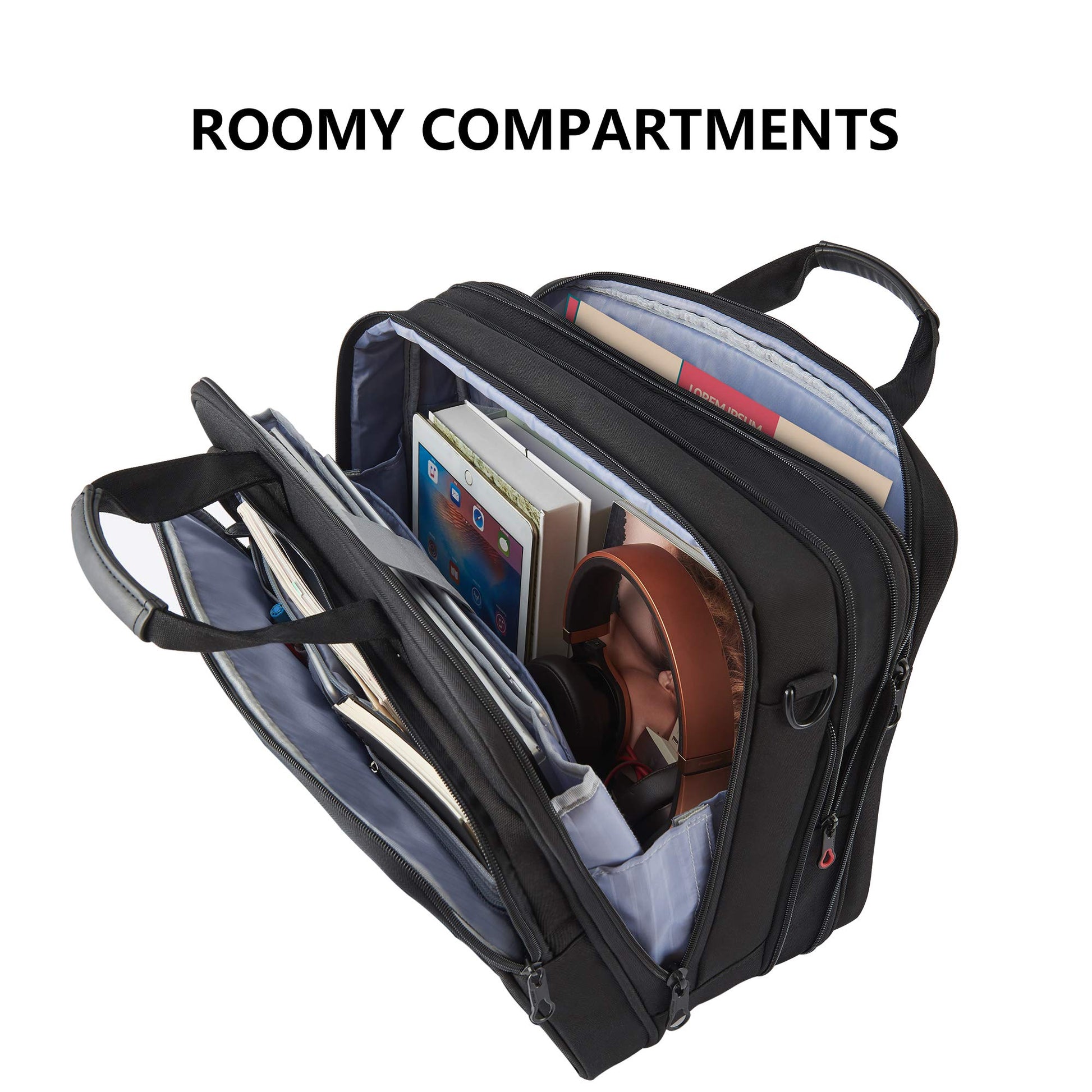 - MULTI-FUNCTIONAL COMPARTMENT: The main compartments provide separated space for your 17.3 inch laptop, iPad, mouse, files,wallet, notebooks and all your items. Padded laptop compartment offers perfect protection for your laptop from accidental bumps and shocks. Convenient front pocket and compartment fit quick access items like keys, card, ticket, passport, earphone, charging cable and so on.