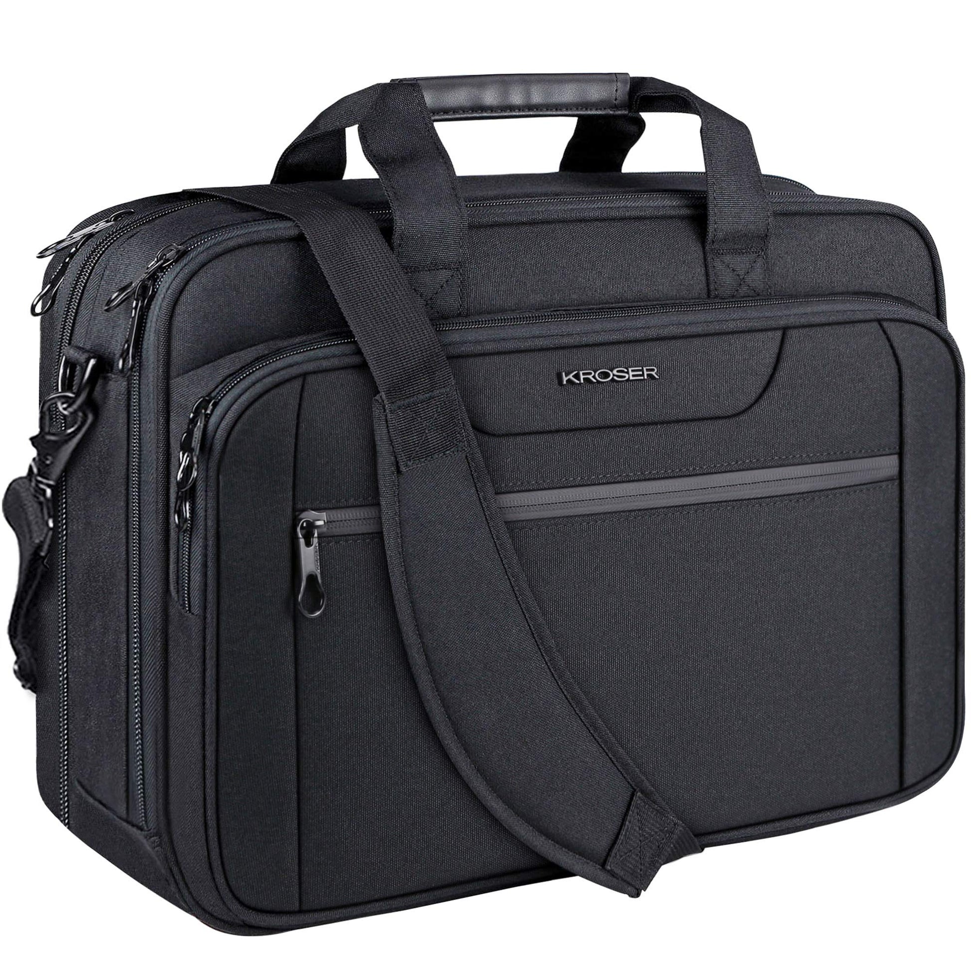 KROSER Laptop Bag Expandable Laptop Briefcase Fits Up to 17.3 Inch Laptop Water-Repellent Shoulder Messenger Bag Computer Bag for Travel/Business/Men/Women-Black