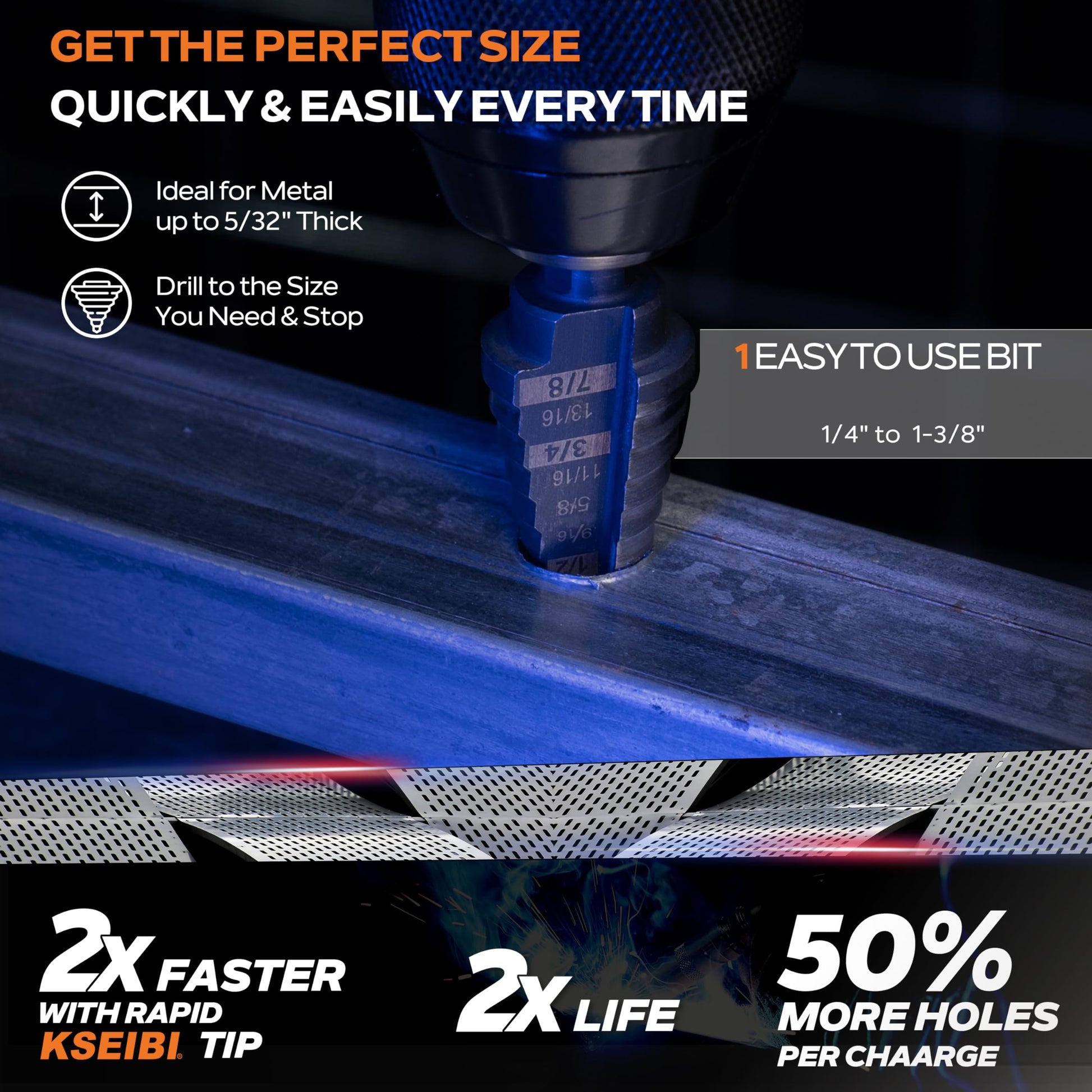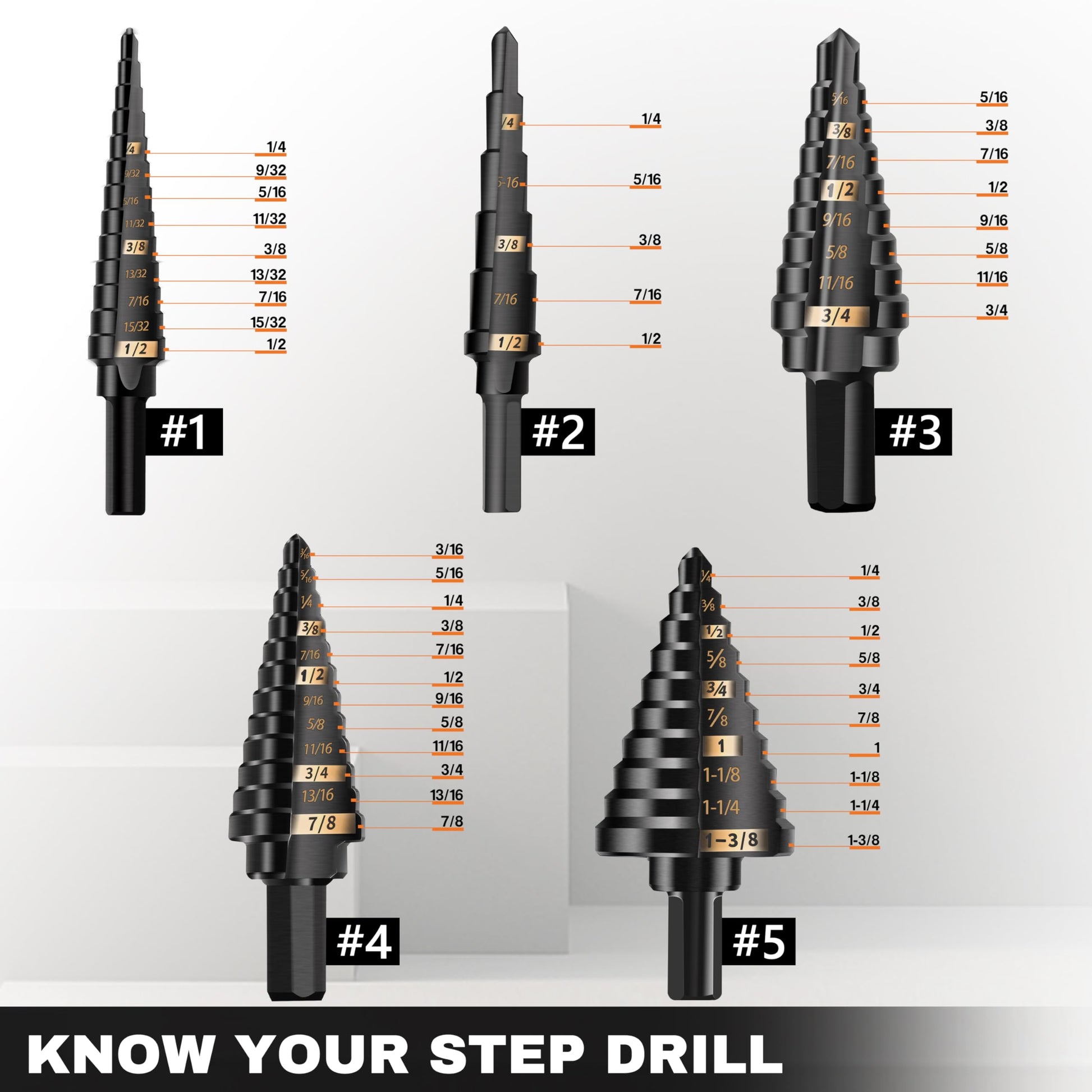- Multi-Sized & Step Design: Precision drilling with a multi-sized step design allows for accurate, clean drilling in various materials, enhancing versatility in metalworking, woodworking, and plastic drilling.