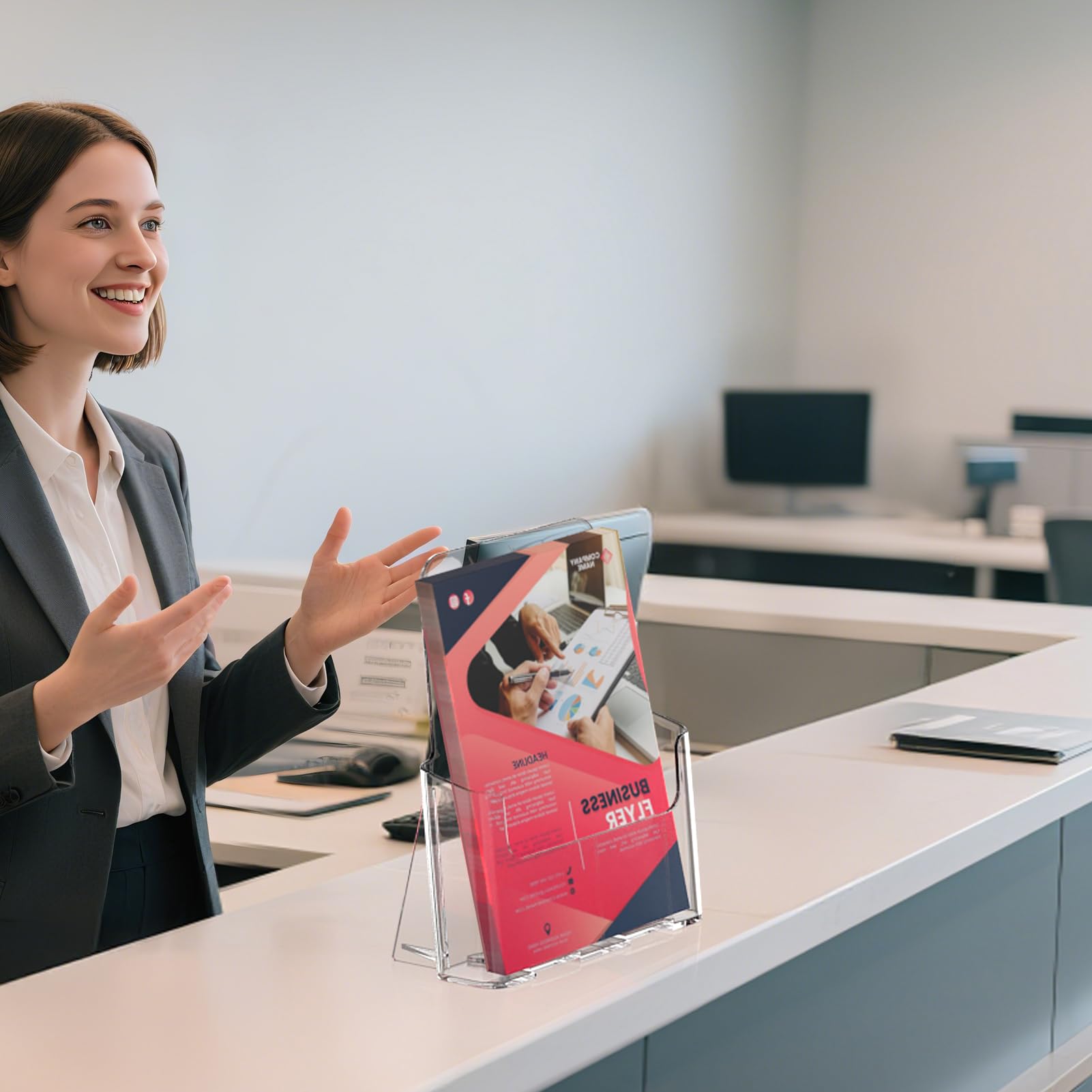 - Professional Look that Lasts: Made with thick, crystal-clear acrylic, this 8.5 x 11 brochure holder resists scratches and surface wear. It delivers lasting durability and a sleek, polished look—perfect for daily display and document organization. Each set includes 2 holders